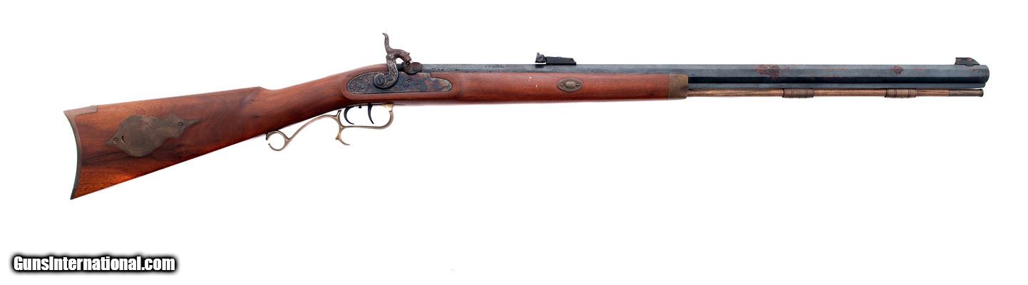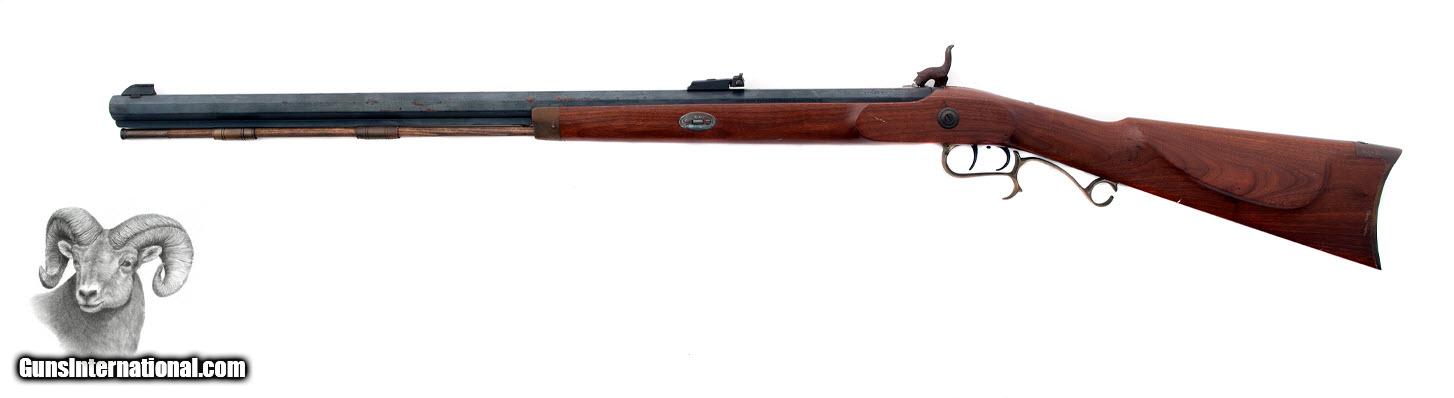 Description: Thompson Center - Hawken - .45 caliber - Item Number: THO330873 Rifle type: Muzzle loader Action: Percussion Cap Barrel length: 29 Sights: Factory Sights Weight: 8 lbs, 8 oz Overall condition: Fair Stock condition: Good Metal condition: Fair Stock: Original finish Metal: Original finish Type of Case: none Finish: Case Colored Type of Butt: Factory Pad Pad thickness: " Manufactured in: USA Manufacture Year: Lop: 14 1/4 " Hand: Right Comments : Barrel has a few heavy rust spots. R-165 SOLD |