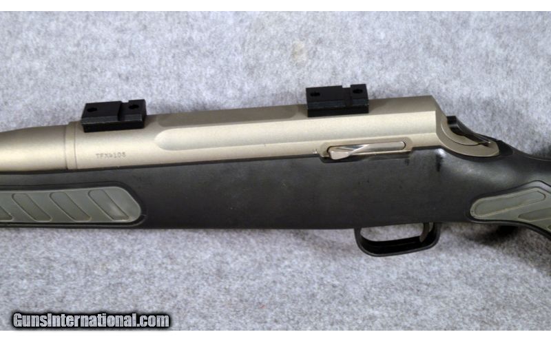 Description: Thompson/Center Venture in .300 Win Mag caliber. Silver cerakote barrel with scope ring mounts already attached. Overall this firearm is in "as new in box" condition. SOLD Manufacturer: Recent manufacture. Caliber Info: .300 Win Mag. Chambers: Bolt action, magazine fed. Metal Condition: Very good. Bore Condition: Very good Barrels: 24" Cerakote barrel. Triggers: Single trigger with 2 position safety. Stock: One piece coated synthetic stock and forend. Stock Dimensions: 13 1/2: LOP. Fore End: Coated synthetic with sling attach posts. Butt Pad: Original soft rubber butt pad. Weight: 7 Lbs. 4 Oz. Sights: No iron sights, weaver style ring mounts are attached. Extras: Original box. Item Location: Lexington, KY |