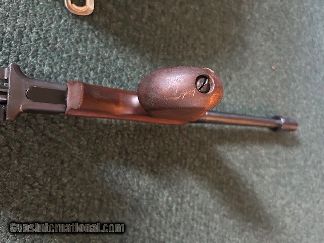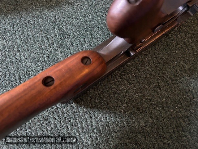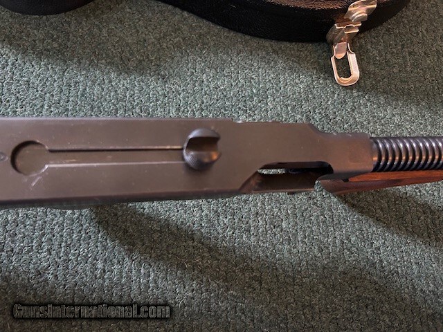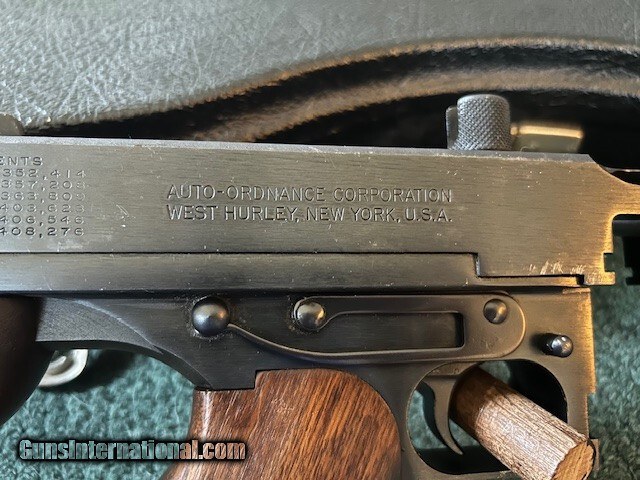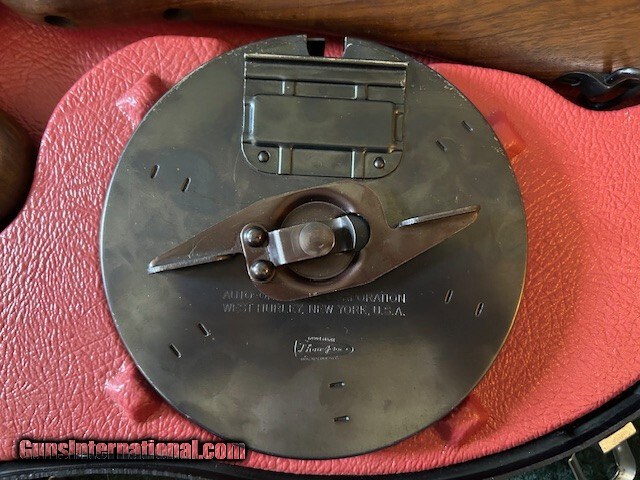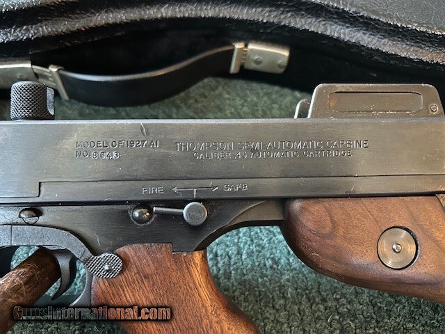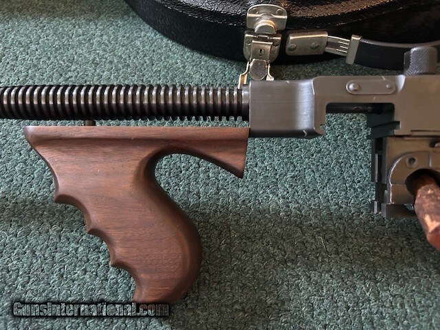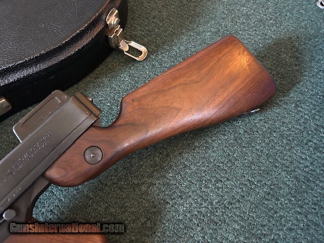 Description: Thompson made in West Hurley, Auto Ordance, model 1927 A1, 45 ACP, cuts compensator, 95% overall condition, 18" barrel, 17" length of pull, lyman sight, detachable magazine, 50 round drum, two clips, third hand drum magazine loading tool, violin case. Serial # 8643. For further information and faster service call John at 941-224-5563. Price: $1,849.00 Contact Seller |
