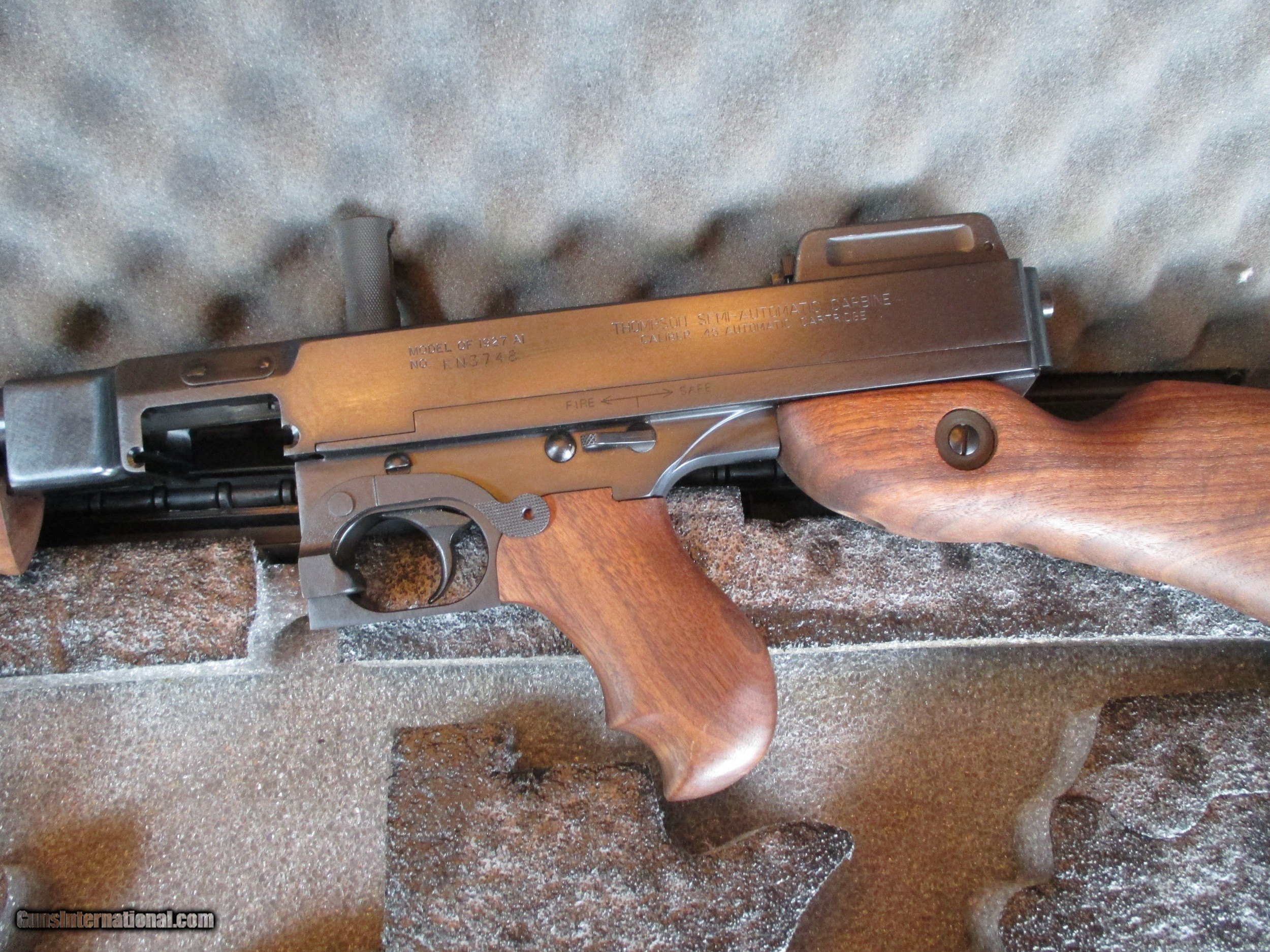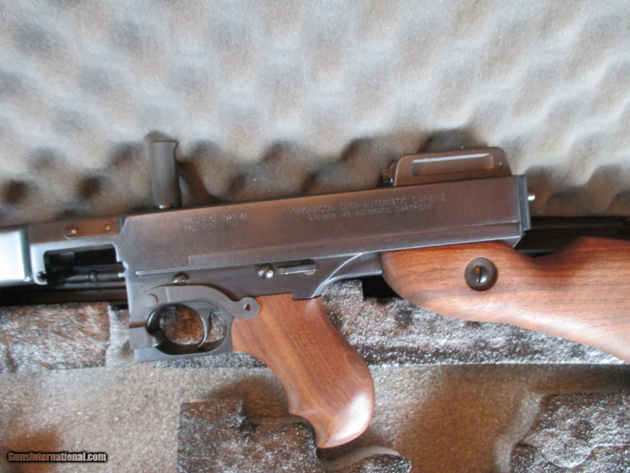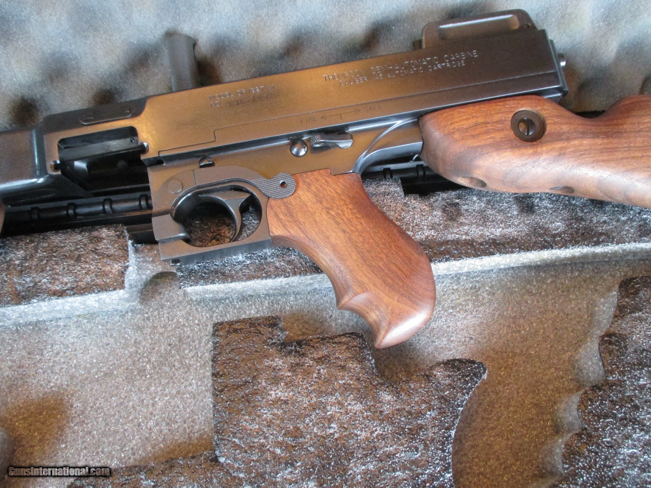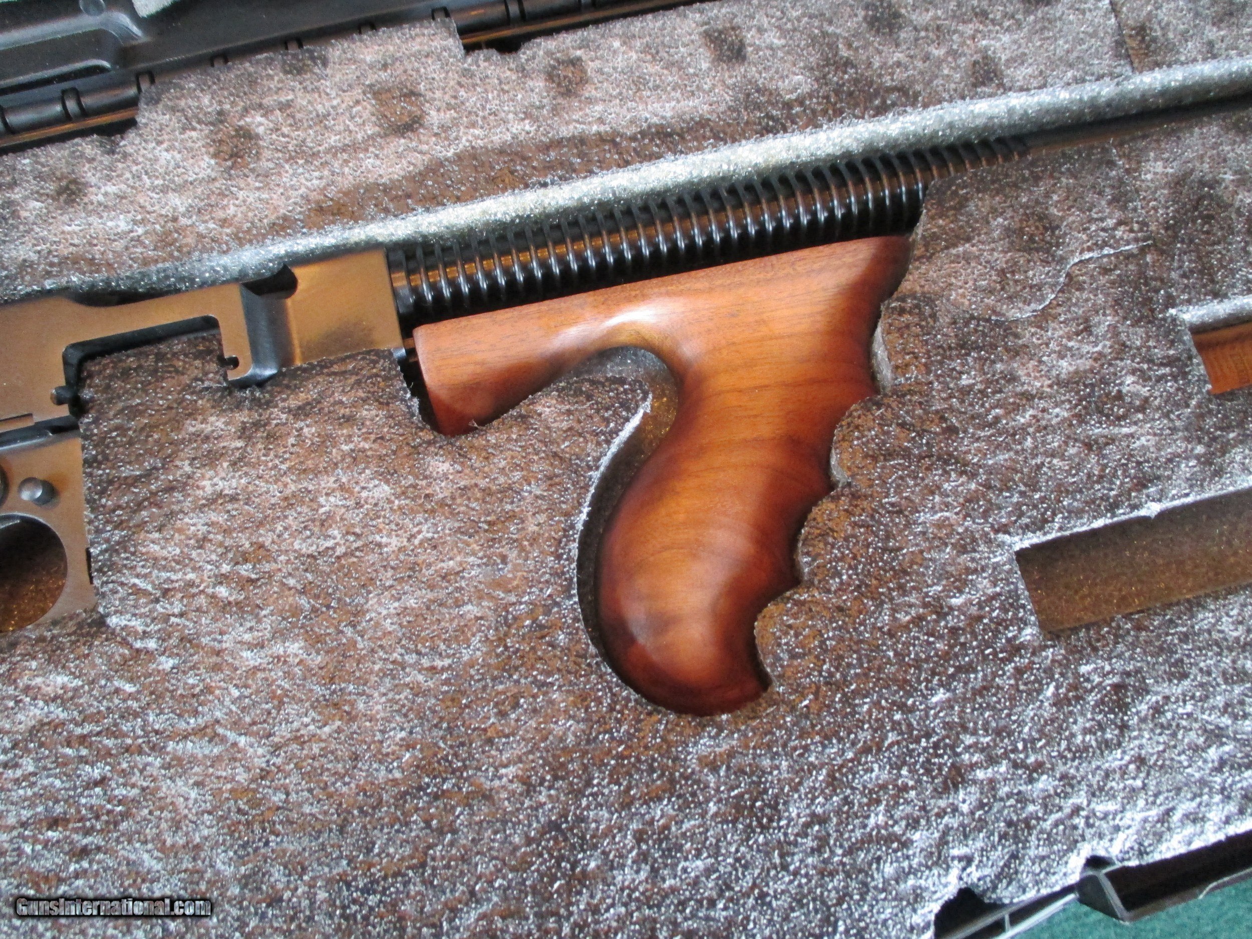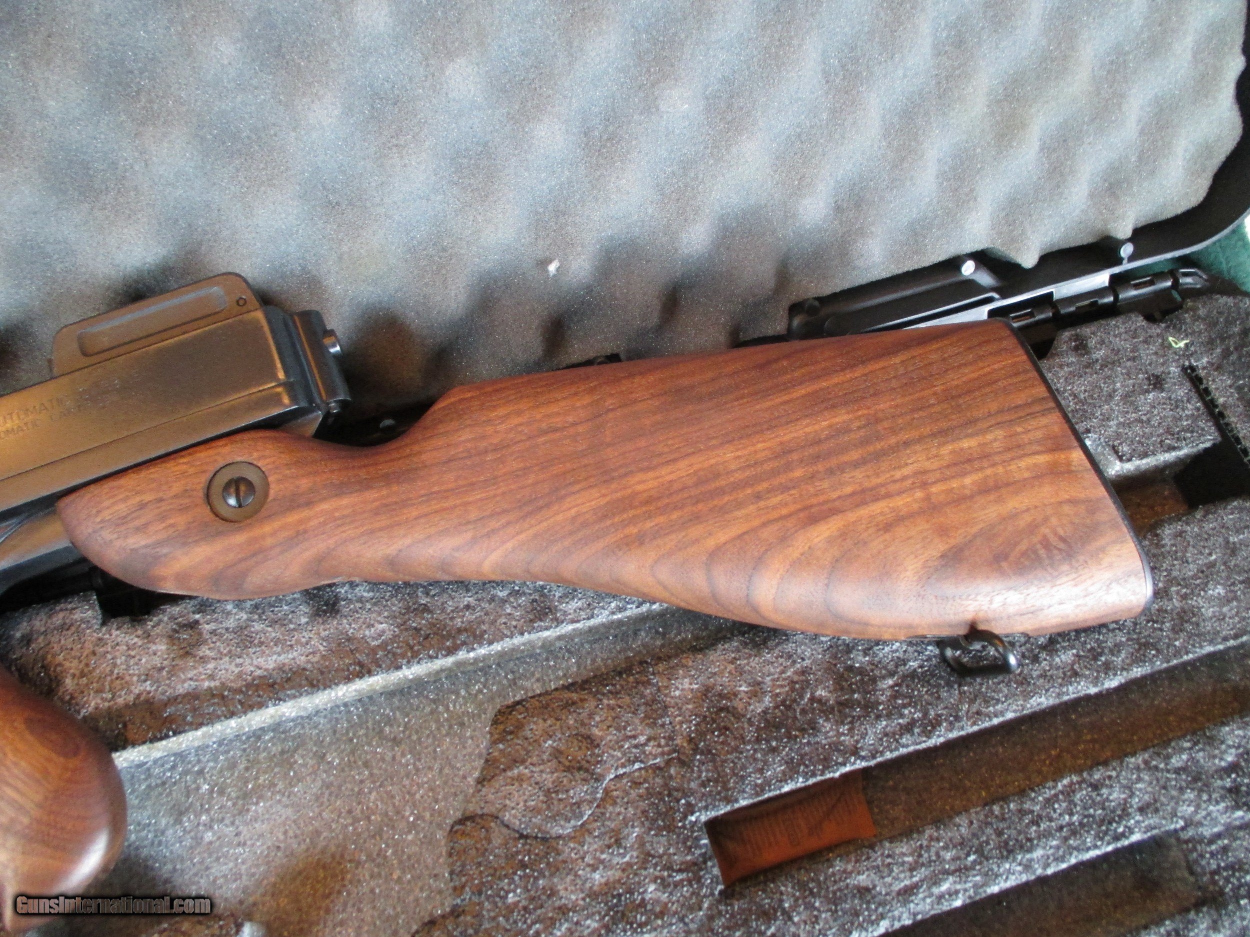 Description: Thompson Sub Gun by Auto Ordinance 45 acp semi automatic. Outstanding hand selected American Walnut. Custom gunsmith charging handle. The original assault rifle used in many conflicts and a favorite weapon of the Gangsters. ZERO dings or scratches. Includes two 30 round mags. This rifle is extremly heavy and the hard case is near 60 inches long. This listing is for 30 days only then customer wants it back. So shipping will depend on where you live. We ship only to brick and mortar FFL. Stallion Firearms 810-922-4279. SOLD |