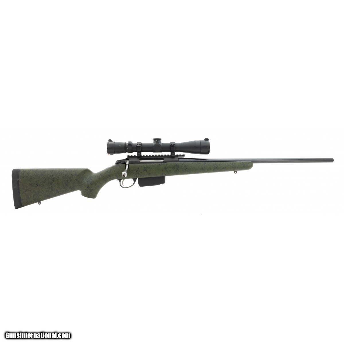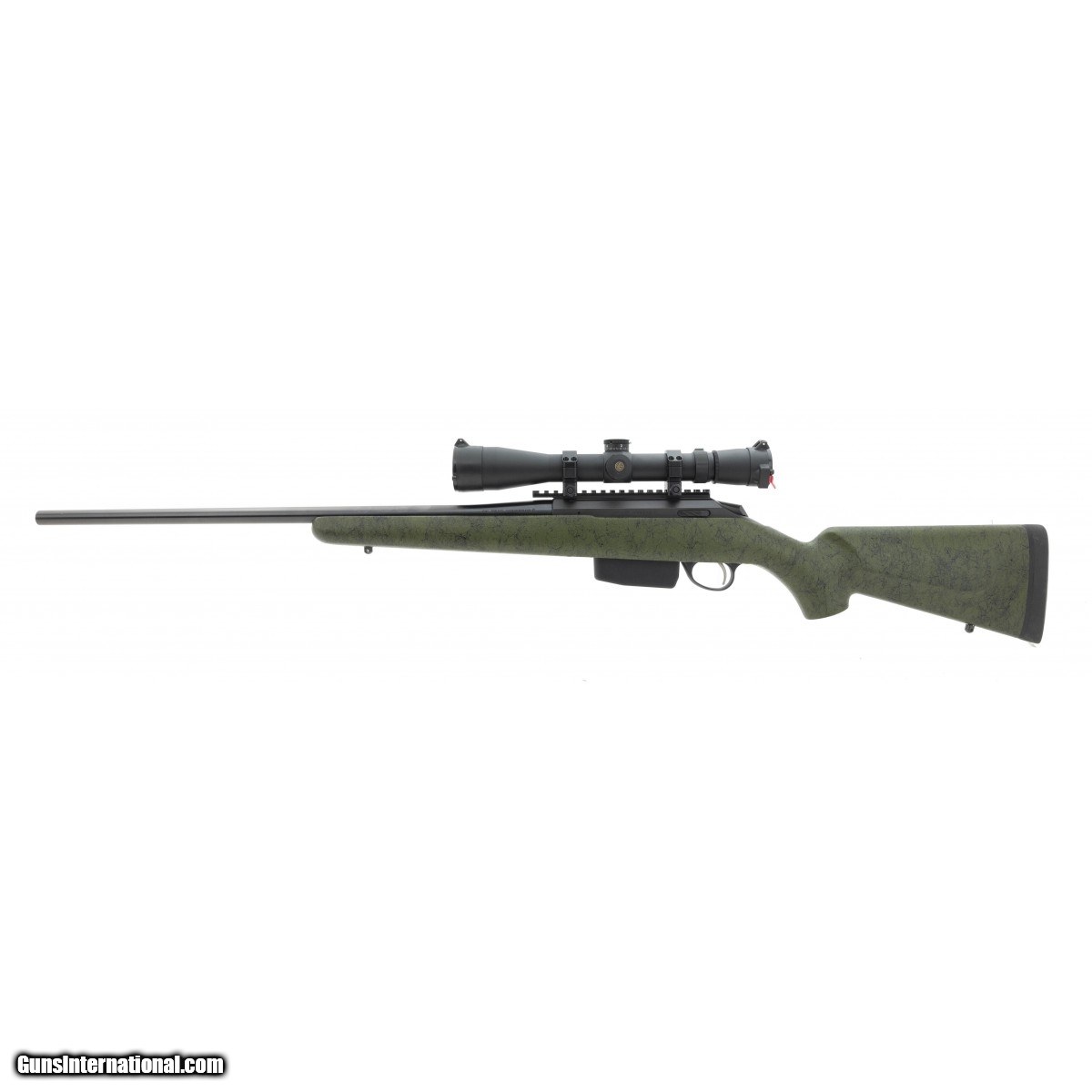 Bolt action rifle with green composite stock and detachable mag. Has a Leupold VX-3i 4.5x14 scope. Excellent condition.