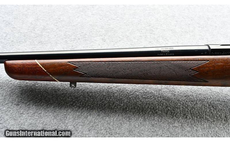 Description: Good condition with Walnut stock, free floating barrel, detachable magazine and Volquartsen stabilization module. Made in Finland .22-250 Remington Chambers: .22-250 Remington Metal Condition: Good Wood Condition: Very good Bore Condition: Very good Barrels: 21" Threaded Stock Dimensions: 13.5" LOP Fore End: Checkered wood with forend cap Butt Pad: Rubber recoil pad Weight: 8 LBS Sights: None Item Location: Grand Junction, CO Price: $559.99 Contact Seller |