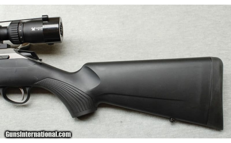 Description: Excellent condition, light wear, few small scratches, comes with one mag. Bolt action hunting rifle, 22" barrel, matte stainless finish metal, ultra smooth action & crisp trigger and Vortex Diamondback 4-14x scope. Textured black synthetic stock with Tikka recoil pad and sling swivel mounts. .270 Winchester SOLD Chambers: Bolt action Metal Condition: Excellent Wood Condition: Stock is excellent Bore Condition: Bright Barrels: 22 Triggers: Factory Stock Dimensions: 14" LOP Fore End: Textured Butt Pad: Tikka pad Sights: Vortex 4-14x scope Item Location: La Vista, NE |