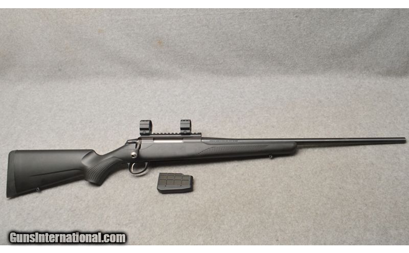 Description: This Tikka Model T3X bolt action rifle in .308 Winchester is in excellent condition. The black matte barrel and receiver frame are excellent. The 22" black matte barrel is excellent with sharp clear rifling in its bore, but a small scrape on the LH of the barrel towards the muzzle. The factory trigger is firm with a smooth light release. The Tikka factory guarantees 1 MOA accuracy out of the box. The black checkered synthetic stock is excellent with no blemishes. This Tikka T3X comes with one(1) 3 round magazine and scope rings, but no box or other accessories are included. .308 Winchester SOLD Metal Condition: Excellent Bore Condition: Excellent Barrels: 22" Black Matte Steel Triggers: Factory Silver Curved Grooved Stock Dimensions: LOP 13 3/4" Height 7 1/2" Length 42 1/2 Fore End: Matching Black Checkered Synthetic Butt Pad: Factory Black 1" Rubber Pad Weight: 6 lbs. 13 oz. Sights: None - Scope Rings Item Location: West Chester, OH |