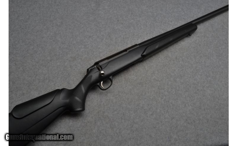 Description: A nice Tikka T3 bolt action rifle in .22-250 Rem. with a heavy barrel. SOLD Caliber Info: .22-250 Rem. Metal Condition: Good with light handing marks Wood Condition: Good with light handling marks Bore Condition: Shiny and bright Barrels: 24 inch heavy barrel Triggers: Factory trigger Stock: Black polymer pistol grip stock with removable comb Stock Dimensions: 13 3/4" LOP Fore End: Black polymer forearm Butt Pad: Beretta rubber butt pad Weight: 8.1 lbs Sights: Driilled and tapped for scope bases Extras: 1 magazine Item Location: Woodbury, MN |
