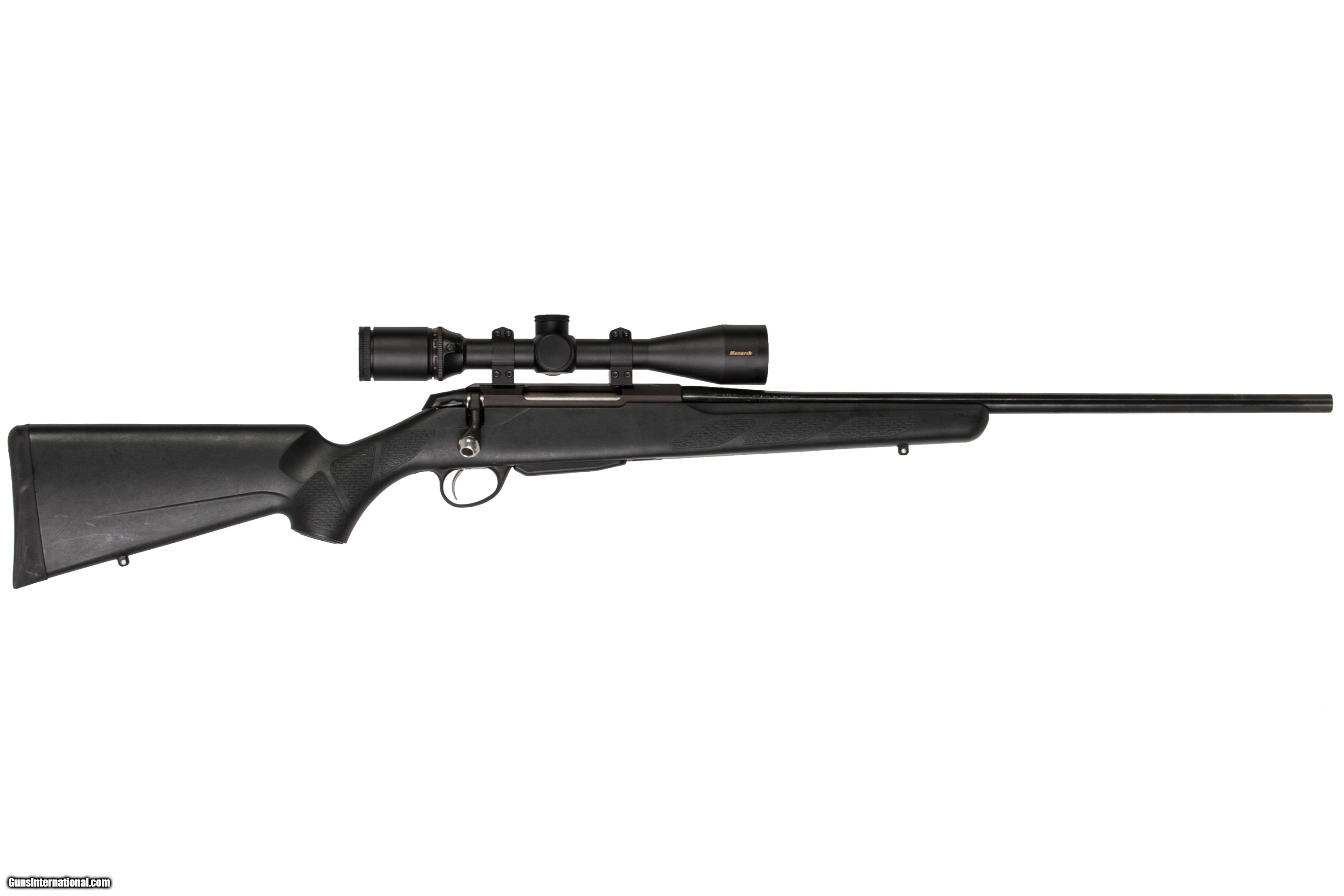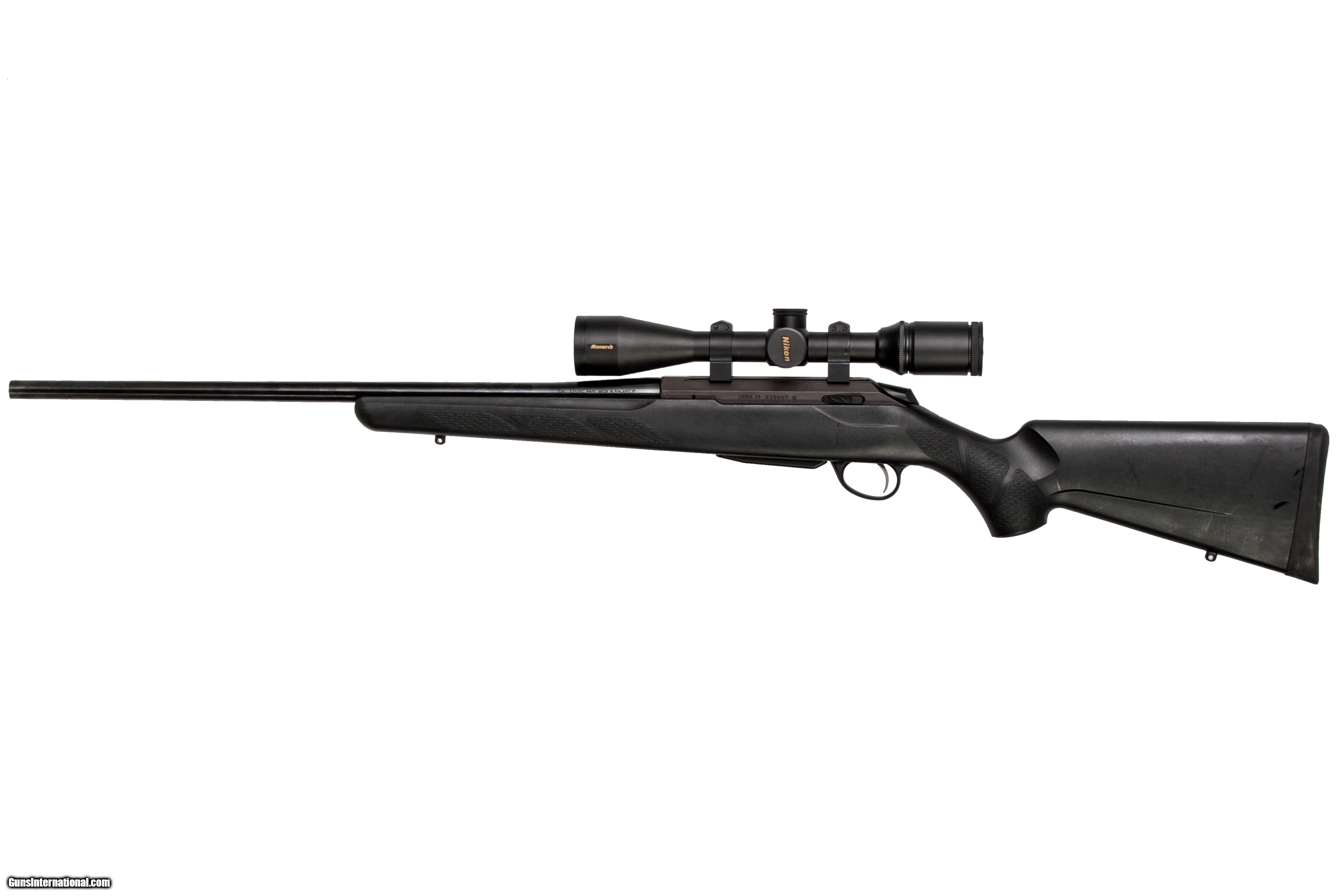 Tikka T3 chambered in 22-250 Rem with a 22 inch barrel and a Nikon Monarch 3-12x42 scope. This gun is in excellent condition and is covered by Dury's Lifetime Warranty.