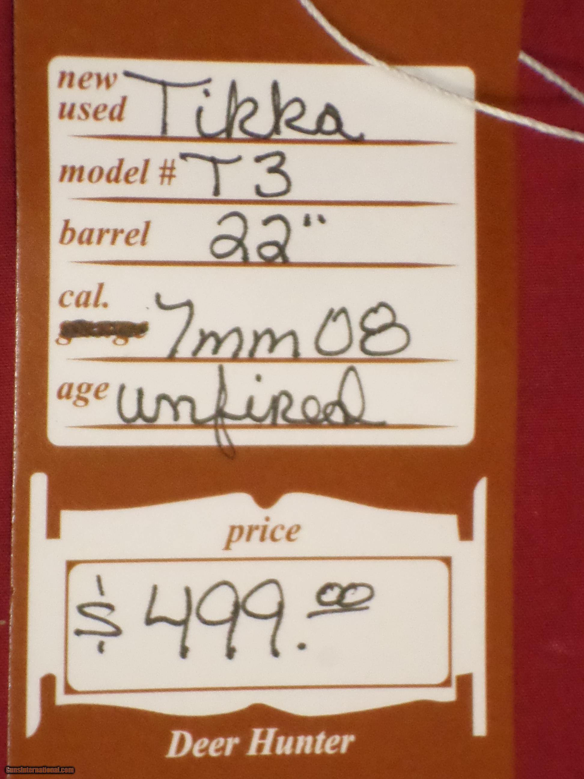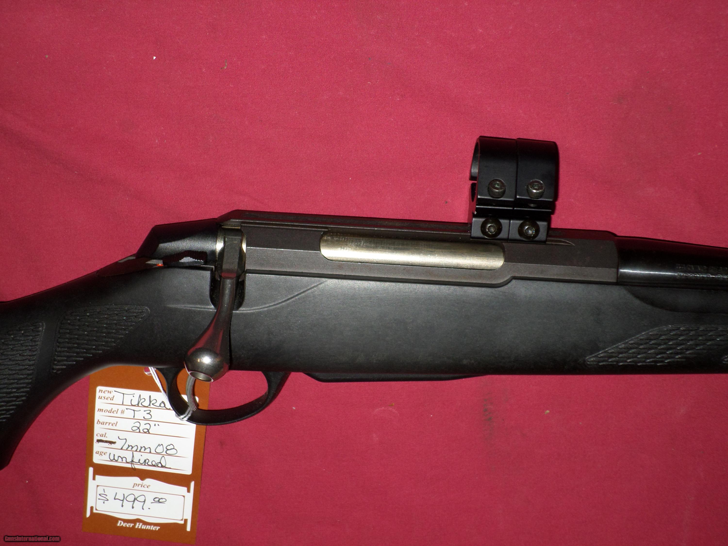Description: SOLD For sale, Tikka T3 in 7mm-08, blue and synthetic, with scope rings. Appears unfired. SOLD To see more of our inventory, visit deerhunterguns,com We collect 7% sales tax for Florida sales. We accept MC, Visa and Discover, no AmEx. No Sales to California. Like us on Facebook: Deer Hunter Guns SOLD |