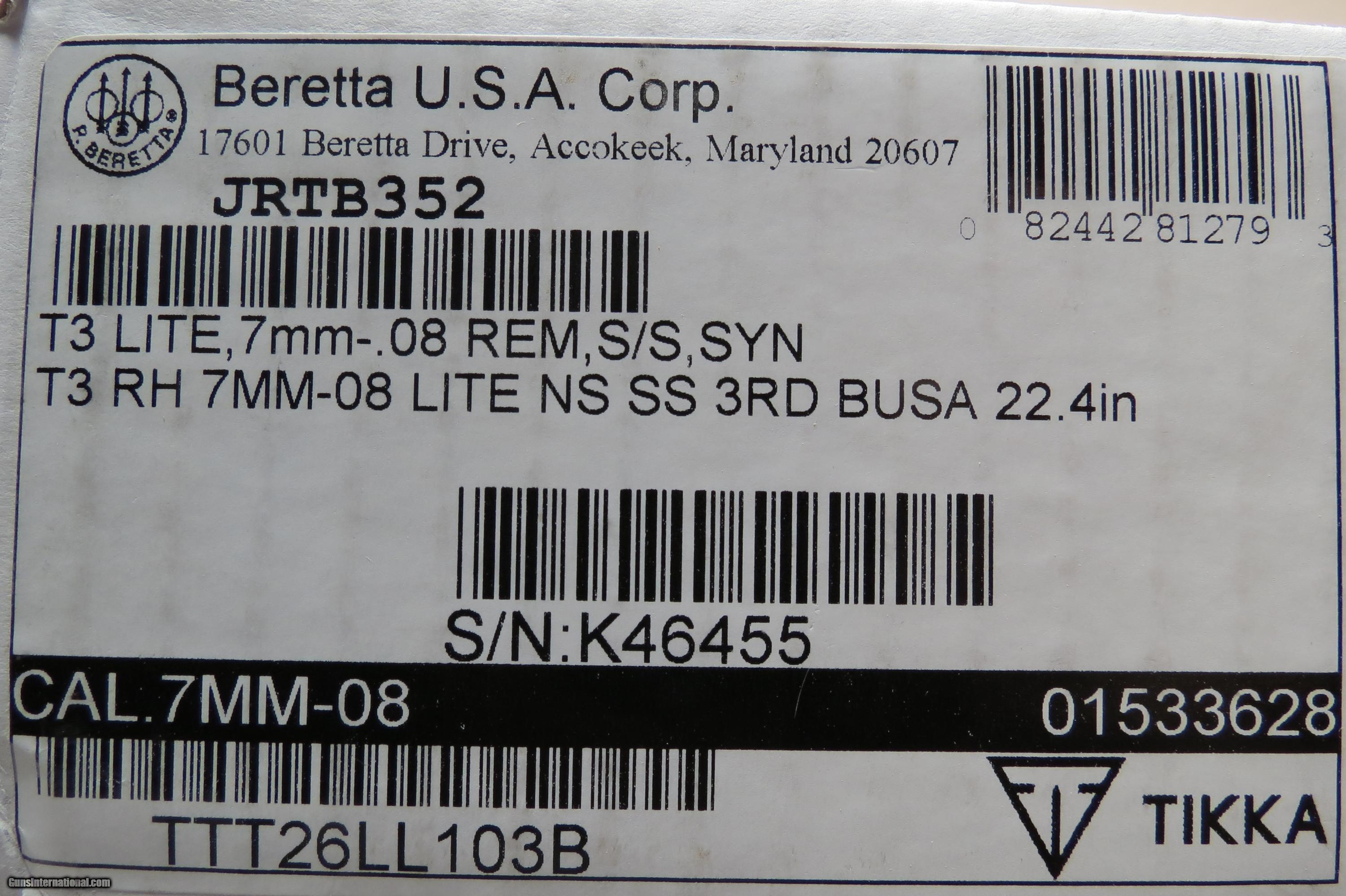 Description: Tikka T3 in 7mm-08 Cold hammer forged stainless barrel and action, checkered walnut stock, rubber recoil pad, detachable magazine, 2 position rear safety. Adjustable trigger, Rifle has been shot but appears as new in box condition. Comes with rings and bases. Shipping/Insurance $35 SOLD Manufacturer: Tikka Model: T3 Caliber Info: 7mm-08 Condition: As New in Box Metal Condition: Excellent Wood Condition: EXcellent Bore Condition: Excellent |