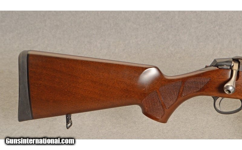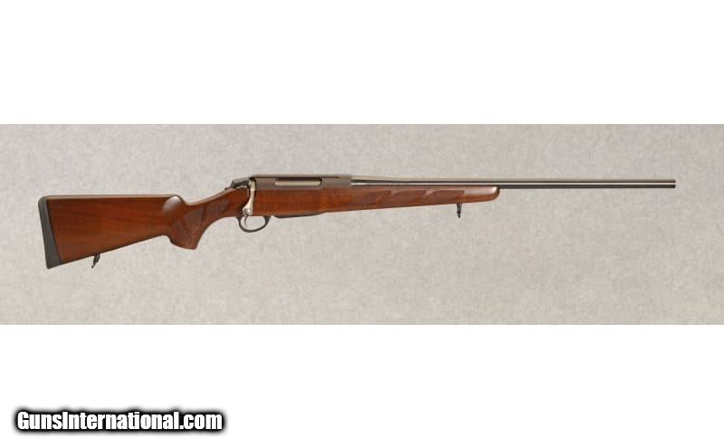 Description: The Tikka® T3 Hunter Bolt-Action Rifle is an innovative, well-designed hunting rifle that shoots accurately and functions flawlessly. The T3 Hunter has a matte, oil-finished walnut stock, and a blued barrel and receiver. A high-quality recoil pad makes shooting the Hunter extremely manageable. Additional screw placements on top of the receiver provide for secure attachment of a scope base or Picatinny rail. The T3 uses a 2-lug bolt with a 75º lift that cycles smooth as silk. The 75º bolt lift aids in keeping hand and gloves away from the scope and speeds the cycling process. A single column polymer magazine feeds reliably, and facilitates in loading and unloading the rifle. A single-stage adjustable trigger breaks crisp and clean, allowing hunters to make quick, accurate shots under field conditions. .30-06 Springfield SOLD Chambers: 3-Round detachable magazine Metal Condition: Excellent Wood Condition: "Excellent, only light handling wear Bore Condition: "Excellent, bright and shiny Barrels: 22 1/2" Hammer forged barrel Triggers: Serrated trigger Stock Dimensions: 14" LOP Fore End: Checkered walnut Butt Pad: Rubber recoil pad Sights: "None, drilled and tapped for scope mounts, receiver has integral groove for scope mount Item Location: Garner, NC |