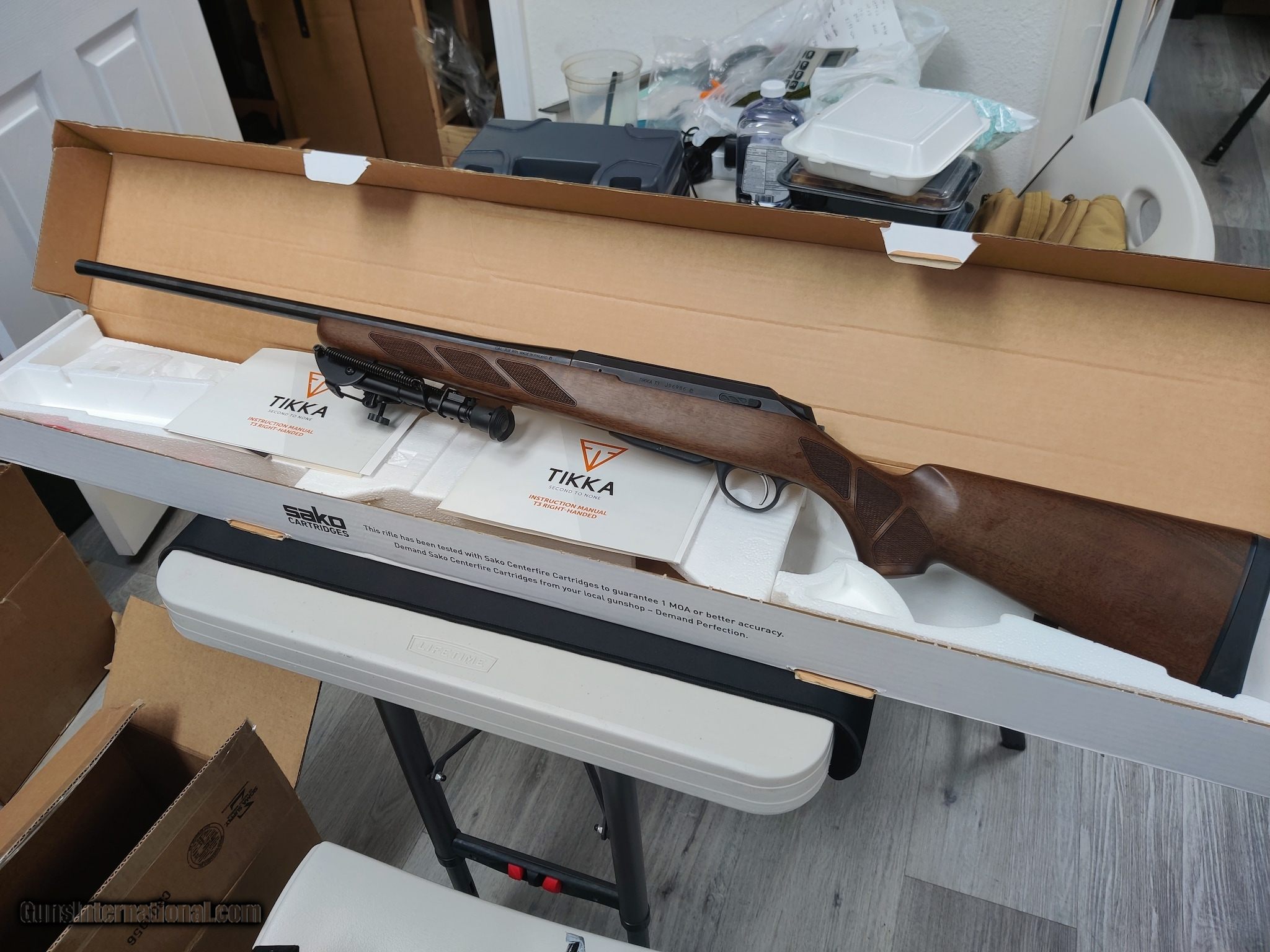 Description: Guns Listing ID: 551158 Brand new, less than five round testing shoot, no any scratchs, coming with bipod. The Beretta JRTA316 Tikka T3 Hunter Rifle in .308 Win features a 22.5-inch barrel, blued finish, drilled and tapped, satin walnut stock with T3 checkering pattern, no sights, micro adjustable trigger system, black rubber recoil pad, sling swivel studs, scope rings, an overall length of 42.5 inches, an unloaded weight of 6.625 lbs, and a 3+1 round capacity. SOLD Manufacturer: TIKKA Model: T3 HUNTER Caliber Info: .308 WIN/7.62MM NATO Condition: Used - Non-Certified Barrels: 22.4 BARREL |