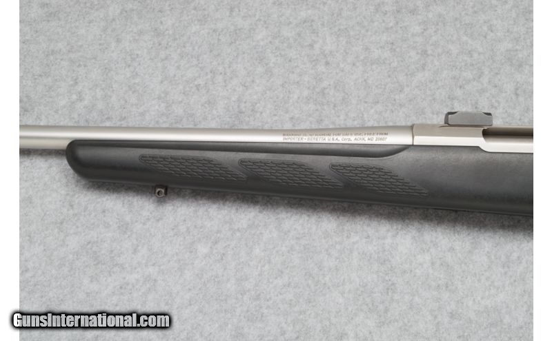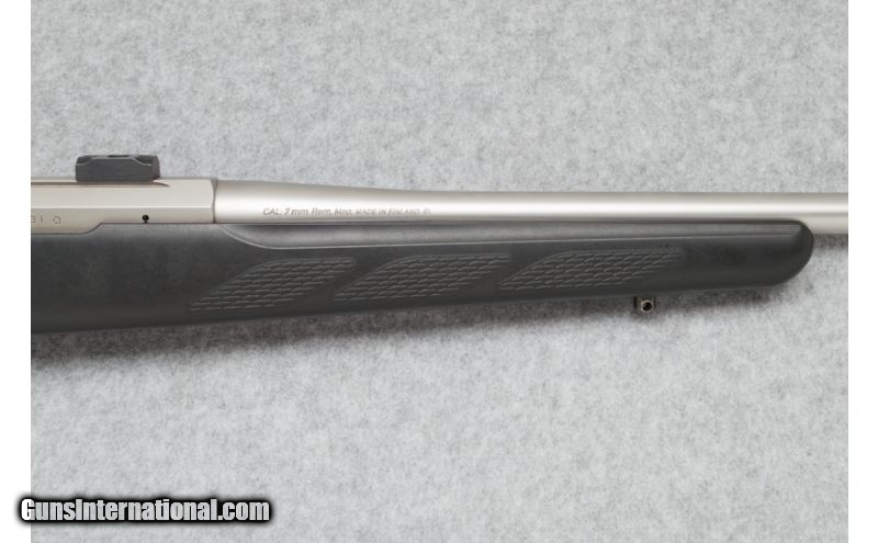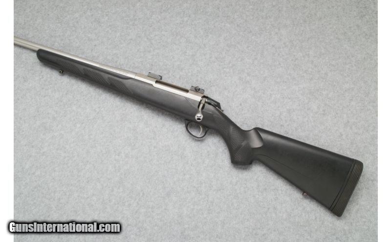 Description: Used. SOLD Caliber Info: 7mm Rem. Mag. Metal Condition: Excellent; non-glare stainless Bore Condition: Clean and sharp Barrels: 24 Triggers: Grooved target style Stock: Black textured pistol grip synthetic Stock Dimensions: LOP - 14 1/8 Fore End: Black synthetic Butt Pad: Black rubber pad Weight: 6 lbs. 7 oz. Sights: No sights Extras: Factory box; Leupold bases. Item Location: Sun Prairie, WI |