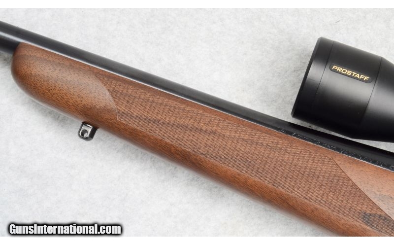 Description: SOLD Caliber Info: 7mm-08. Metal Condition: Excellent. Wood Condition: Very good with handling marks. Bore Condition: Shiny with strong rifling. Barrels: 22 Stock: Checkered walnut. Fore End: Checkered walnut. Butt Pad: Rubber recoil pad. Weight: 7-lbs., 9-ozs. Sights: 3-9x40 Nikon Prostaff Scope. Item Location: Fort Worth, TX |