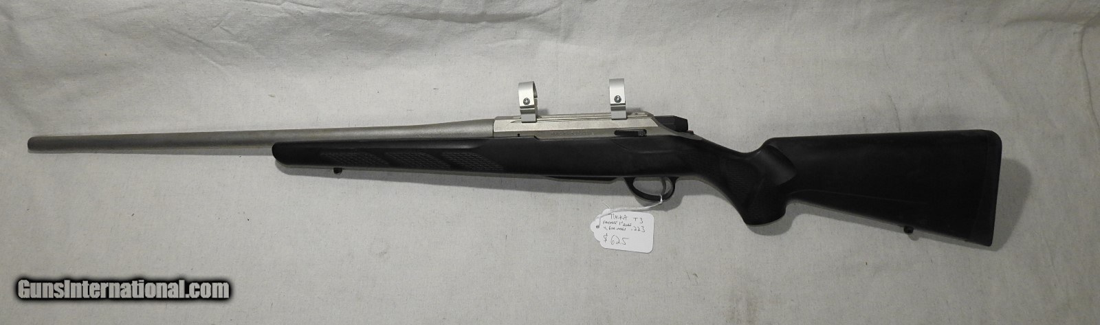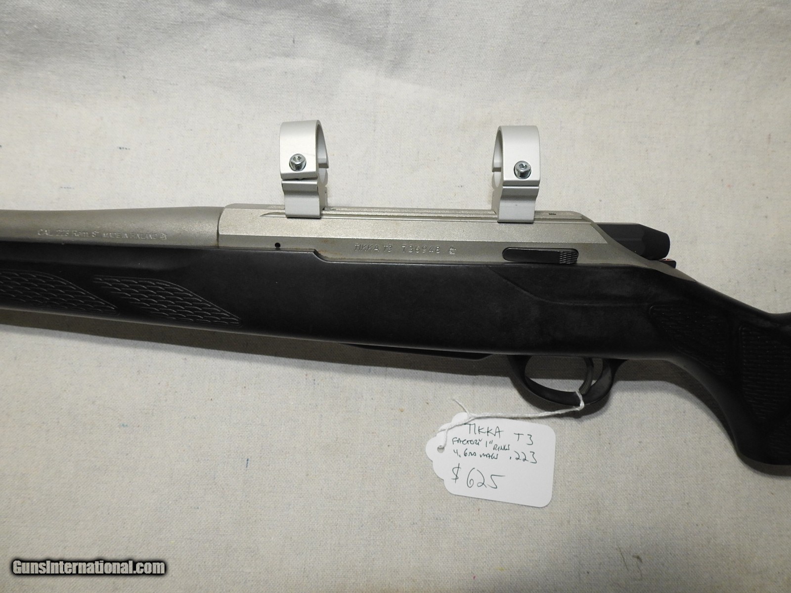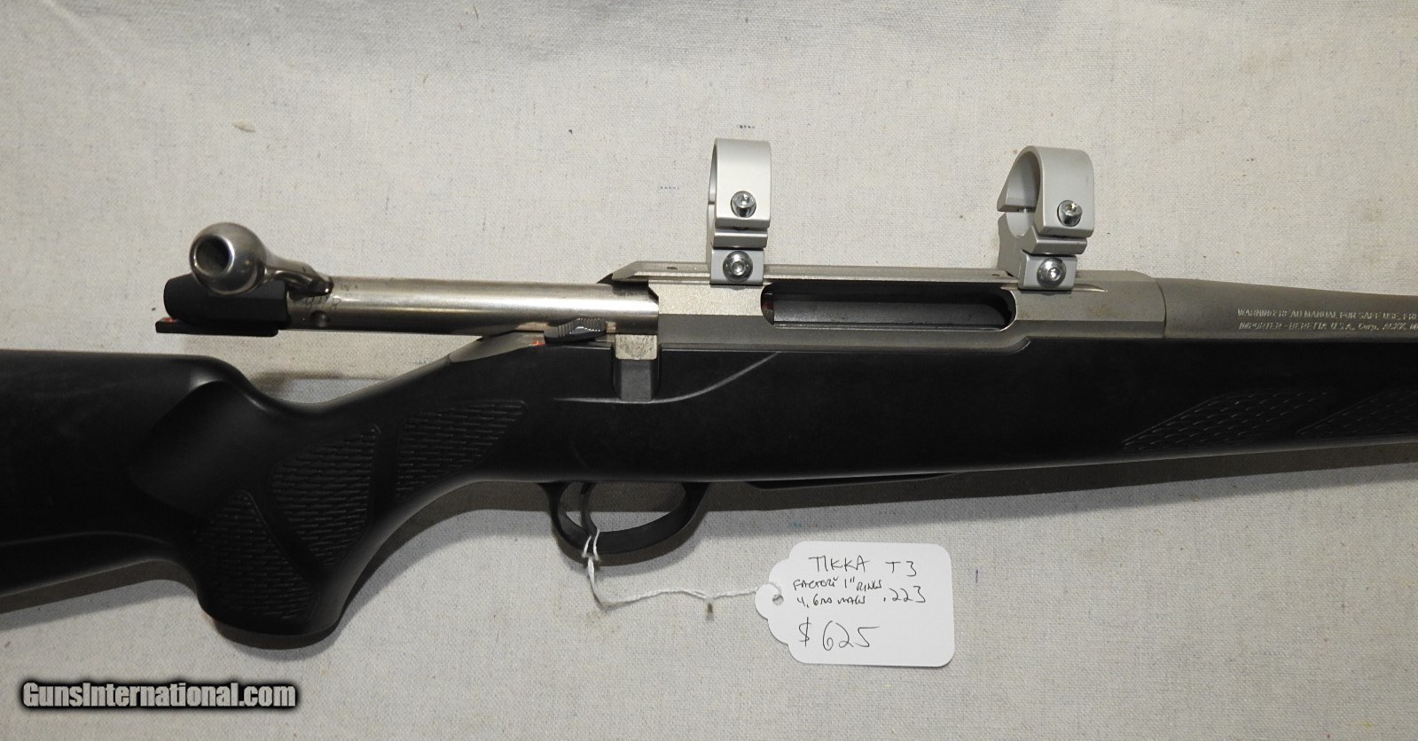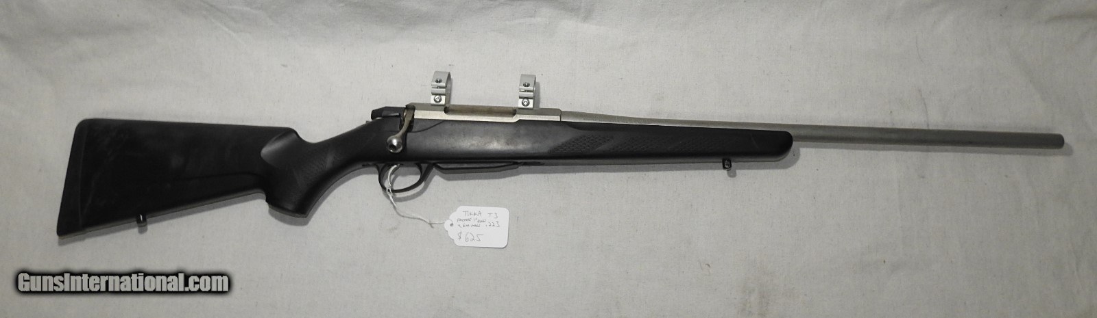 Description: Tikka T3 in .223 Remington 1/8 twist barrel. Factory 1" rings 4 and 6 round magazines Less than 200 rounds through rifle Buyer pays shipping Sorry, no shipping to CXA or IL. SOLD Rifle Caliber: .223 Remington |