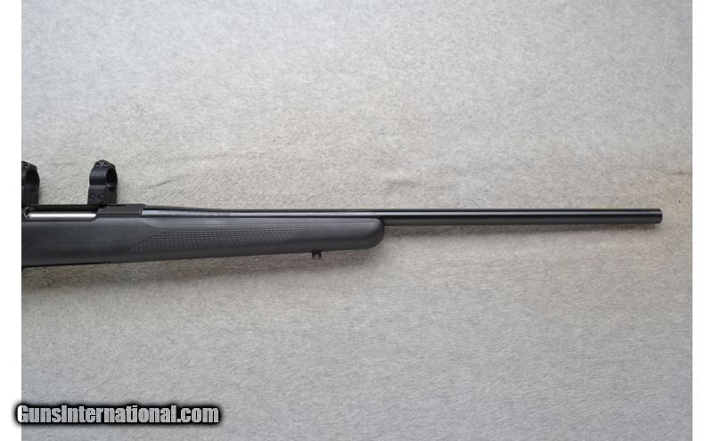 Description: This Tikka Model T3x is a right hand bolt action rifle in .270 Win. Cal. It has a 22 inch barrel. Scope rings are attached. No iron sights. The stock is a textured grip black polymer pistol grip butt and forearm. It has a grooved trigger. .270 Winchester SOLD Chambers: Bolt Action 4 round detachable magazine. Metal Condition: Very good. Some minor handling marks. Bore Condition: Excellent. Barrels: 22 inches. Triggers: Grooved. Stock Dimensions: LOP 13 7/8 inches. Fore End: Textured grip black polymer. Butt Pad: Tikka black rubber recoil pad. Weight: 6 lb. 8 oz. Sights: Scope rings attached. No iron sights. Item Location: Richfield, WI |