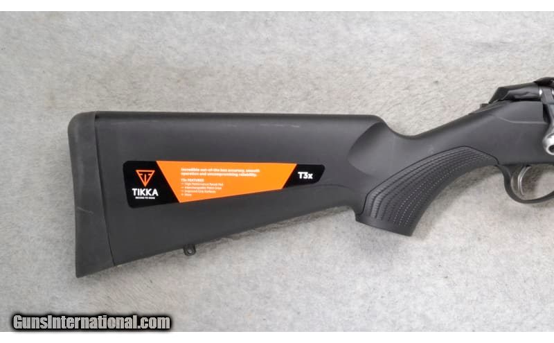 Description: This Tikka Model T3X is a right hand bolt action rifle in .270 Win. Cal. It has a 22 inch barrel. It is drilled and tapped for a scope mount. The buttstock is a checkered grip black polymer pistol grip. The forearm is a checkered grip black polymer with finger grooves. .270 Winchester SOLD Chambers: Detachable Magazine. Metal Condition: Excellent. Bore Condition: Excellent. Barrels: 22 inch. Stock Dimensions: LOP 14 inches. Fore End: Checkered grip black polymer with finger grooves. Butt Pad: Tikka Black rubber recoil pad. Weight: 6 Lb. 2 Oz. Sights: Drilled and tapped for a scope mount. Item Location: Richfield, WI |