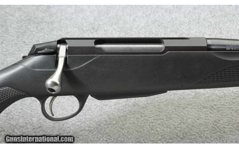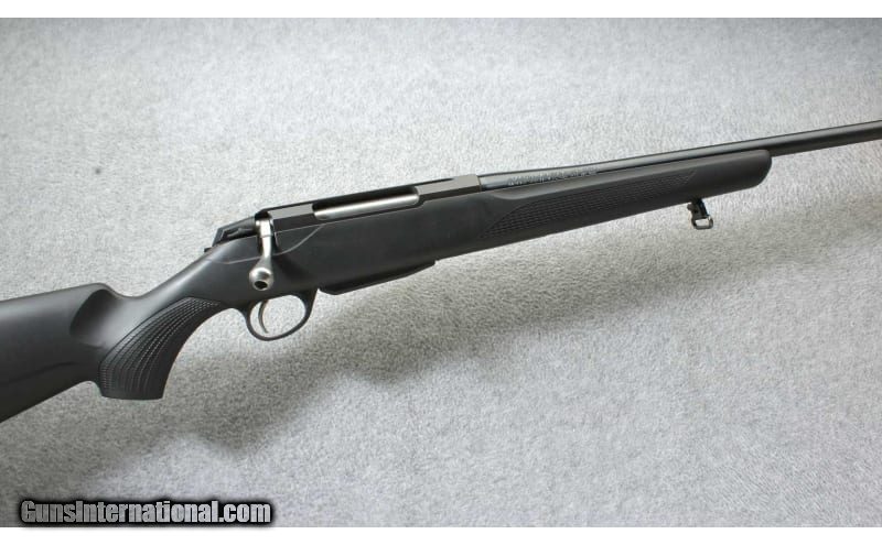 Description: Adjustable to fit a wide range of shooters, the Tikka® T3X Lite Compact Bolt-Action Rifle delivers ideal ergonomics for on-point shooting performance. Those who struggle with long stocks will love the rifle's 12.5" length of pull. Use the included 30mm spacer to extend length of pull and grow with younger shooters. Modular synthetic stock with interchangeable pistol grip customizes the angle for multiple shooting positions. Use the attachment point to change the width of the stock's fore-end. Asymmetrical grip pattern and shape ensures a secure hold. Robust recoil pad minimizes recoil impact and a foam insert within the interior of the rear stock reduces stock-generated noise. Widened angular ejection port makes it easier to feed each cartridge. The extra screw placements on top of the receiver accommodate a Picatinny rail. Metallic bolt shroud covers and protects the rear of the bolt body and the firing pin. Extra-strong lug produces minimal deformation – even with larger calibers. Compared to aluminum, the steel lug doesn't have strong imprinting qualities that would cause deformation when larger calibers are used. T3X Lite Compact bolt-action rifle includes a detachable 4-round magazine. 7mm-08 Remington SOLD Metal Condition: Excellent Bore Condition: Excellent Barrels: 20 inch barrel Weight: 6 Lbs. 2 Oz. Sights: Dovetailed action for scope mounting Item Location: Lehi, UT |