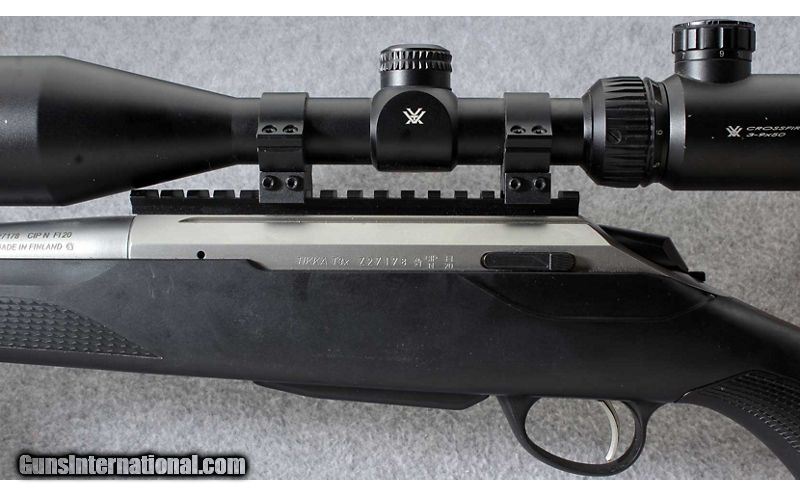Description: The Tikka® T3 Lite Stainless Bolt-Action Rifle for shooters or hunters who sometimes venture into extremely cold and bad weather environments. The recoil pad makes shooting the rifle extremely manageable. A single column polymer magazine feeds reliably: facilitating loading and unloading the rifle. The Tikka T3 Lite Stainless rifle is an innovative and well designed, lightweight hunting rifle. .30-06 Springfield SOLD Metal Condition: Very good with scratches Bore Condition: Excellent Barrels: 22.4 inch barrel Stock Dimensions: 13 3/4 inch LOP Butt Pad: Rubber pad Weight: 8 Lbs. 3 Oz. Sights: Vortex Crossfire II 3-9x50 scope Item Location: Lehi, UT |
