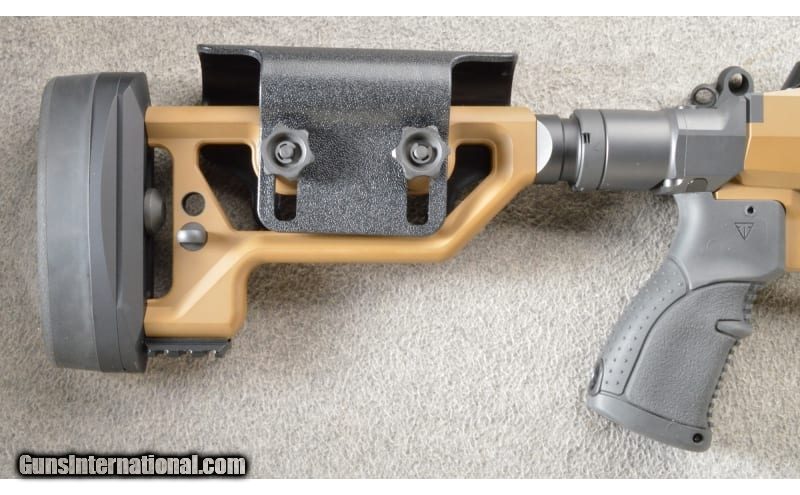 Description: Coyote brown Tikka T3x TAC A1 chambered in .308 Winchester with a 20" barrel. The Tikka features a cold hammer-forged barrel with a 5/8x24 threaded muzzle. The receiver is constructed of aluminum and has a Picatinny rail for optics mounting. The stock is foldable with adjustable cheek piece and QD mounts. The rubber recoil pad comes with three added LOP spacers. It also has a 13.5" M-LOK fore-end with QD fore-end mounting, AR Stock/Pistol Grip/Fore-end Interface. This used gun is in excellent near new condition and comes with the factory box, owners manual, muzzle break, thread protector, cable lock and various tools with hardware. .308 Winchester SOLD Chambers: 10+1 bolt action. Metal Condition: Near new. Bore Condition: Bright strong bore. Barrels: 20" barrel. Triggers: Adjustable. Stock Dimensions: Adjustable. Fore End: M-LOC. Butt Pad: Rubber. Weight: 10.5 lbs Sights: None. Item Location: Owatonna, MN |