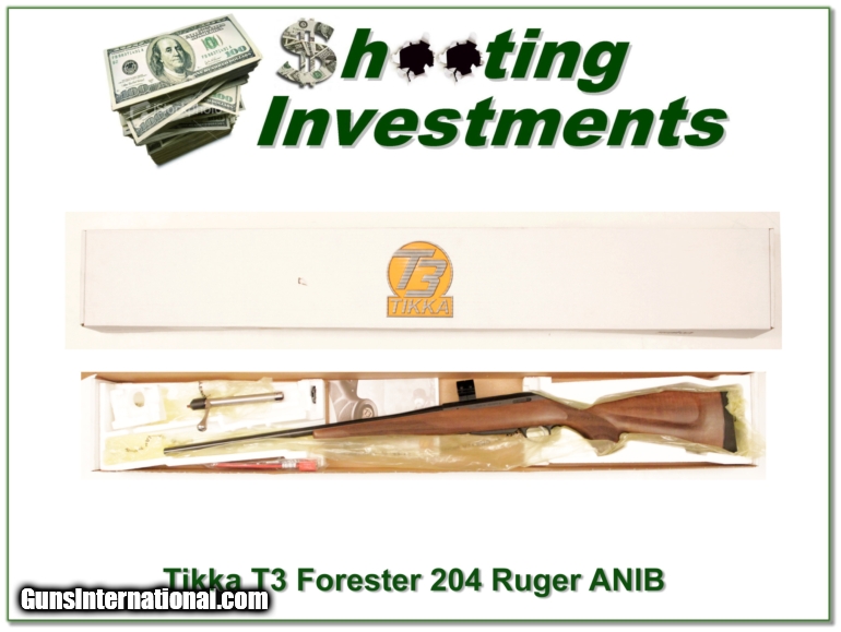 Description: This is a new and unfired Tikka T4 Forester in 204 Ruger. It comes with box and all papers and factory rings. I am selling this one on consignment and as such lay-a-way can’t be used. It does of course have the standard 3 day inspection. It is a Shooting Investment. Shipping and insurance is $30. Please email me with any questions or larger pictures. (I now consign quality firearms only 10%! Let me know if you have any you would like to sell!) [15-0299] Payment: Payment is by Money Order, Cashiers Check or Personal Check. I can now also accept MasterCard and Visa with a 3% convenience fee. PayPal can be used for some items but never firearms. Please let us know if you would like to pay via PayPal. Shipping: The shipping charge will be listed in each description. It is $30 for most guns. Some heavy guns or those insured for over $2000 may be higher. Shipments to Alaska and Hawaii are higher because air shipment is required. Most firearms are shipped within 5 days of receipt of payment. We prefer shipping at the beginning of the week to avoid firearms in transit over weekends. We package all shipments carefully and insure them for the full purchase price, rounded up to the next $100. In the unlikely event that damage occurs, it is important that you save all packaging material for the claims process. Optics are shipped Priority Mail and most other non-firearm shipments are shipped First Class. Returns: Our return policy is simple. If for any reason you are not pleased with your purchase, you may return your item for a refund. The only exception is ammunition, it cannot be returned. It is important to us that you are happy. Guns cannot be fired or dissembled before returning them and must be returned in the same condition as received. Notification of a return must occur with-in 3 days of receipt at your dealer. Shipping, convenience and dealer fees are not refundable and are the responsibility of the buyer. Lay-a-way: If needed, we offer a 60 day lay-a-way option on most firearms. It is 1/3 now, 1/3 in 30 days and 1/3 in 60 days. Lay-a-way firearm sales are final. Consigning your firearms with Shooting Investments: We will help you get top dollar for your firearms. While most local guns shops charge 20% or more, our fee is only 10% with a minimum of $50. At your local gun shop it might take months to sell. Selling on-line provides instant access to thousands of interested buyers. You won’t find any other on-line dealer willing to sell your firearms for only 10% or listing every gun on 4 separate s. Selling through an House typically costs the seller 15% and the buyer an addition 15% (so 30%) and you have to wait several months to sell and longer to receive funds. If properly priced, we will sell your firearms in a week or two. Send us an email or give us a call and we’ll explain how easy it is for you to get top dollar. Trading: We collect guns and usually just trade for guns we want to add to our collections. We often sell guns for others wanting to purchase one of ours. We find this the most fair to both of us. Our Commission is only 10% and we hold the gun you want until yours sells. Please contact us if you want to sell one of yours to buy one of ours. Help for California Buyers: We are happy to ship to California. It is the buyer’s responsibility to make sure any item you buy is legal in your state. We are also happy to help with your purchase of a firearm from someone other than us. If you see a gun you would like to buy but the seller can’t or won’t ship to California we can help. You buy the gun and have it shipped to us. We’ll then ship it to your California dealer. The cost for this service is only $30 + shipping. Let me know if we can help! SOLD |