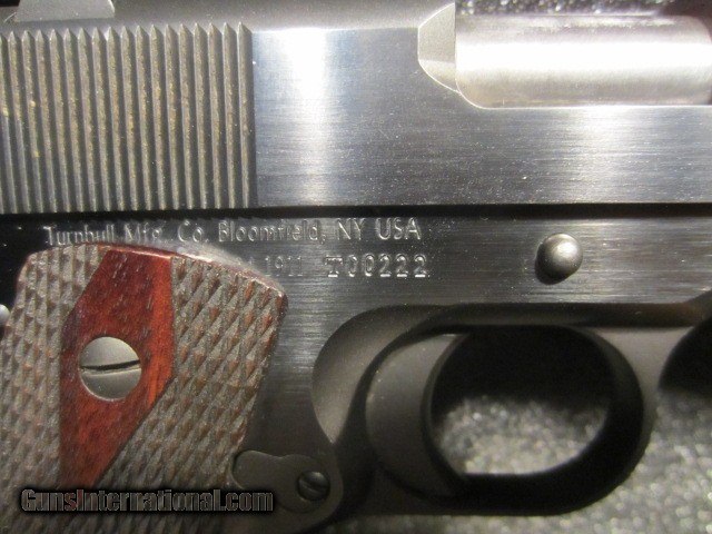 Description: TURNBULL 1911 STANDARD COMMANDER IN RARE 38 SUPER WITH NOVAK SIGHTS AS NEW TEST FIRED ONLY. INLUDES TURNBULL PLASTIC CASE WITH PAPERS TWO TURNBULL 2 TONE CLIPS AND TWO WILSON COMBAT MAGS SERIAL NUMBER T00222 NEED MORE INFORMATION ALWAYS BEST TO CALL OUR OFFICE 716-941-3946 SOLD |