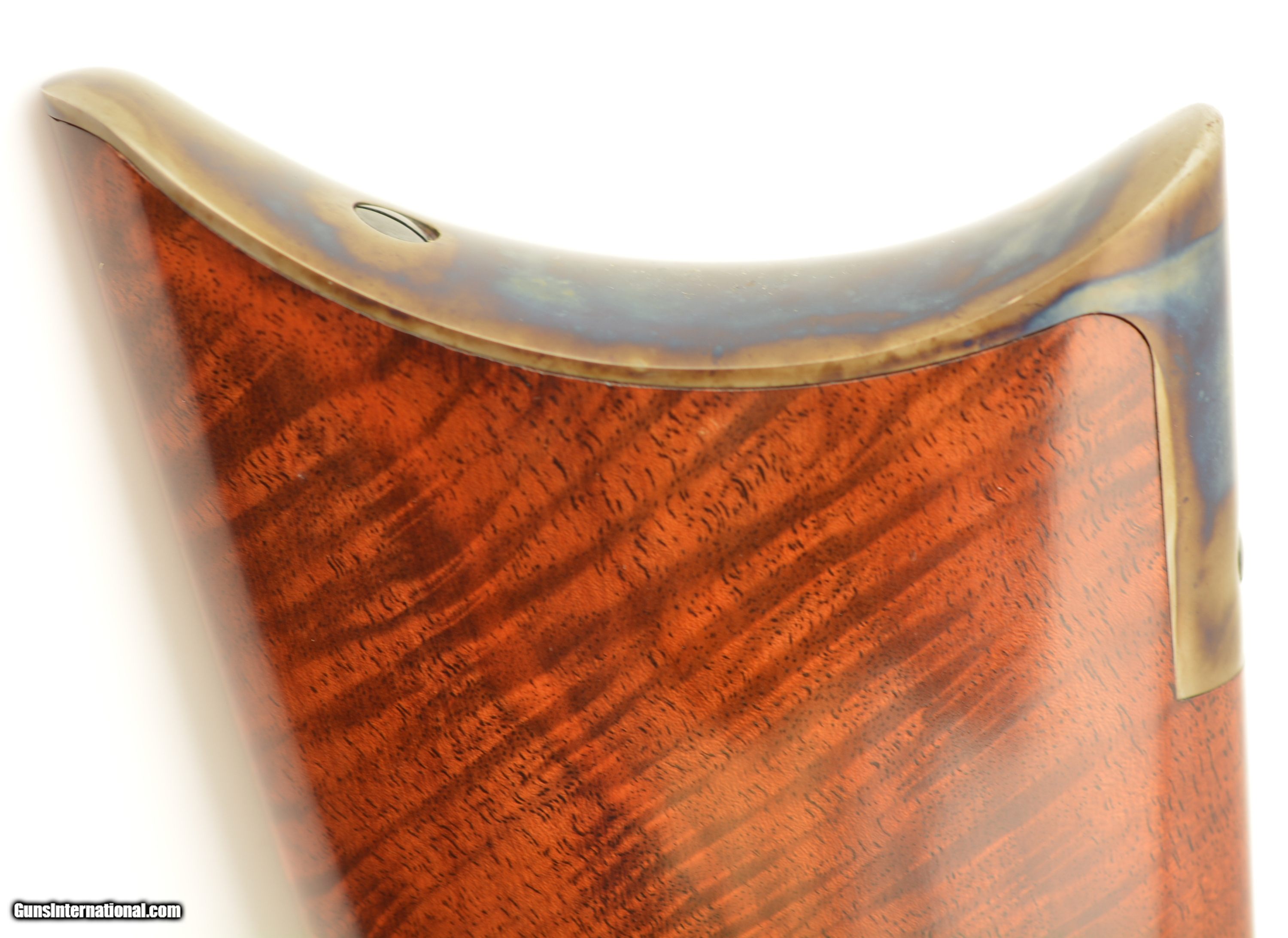 Description: Serial #86TMCZW052, .45-70, 26" octagon barrel with an excellent, bright bore. This is a bespoke, Turnbull-made rifle that has practically all of the original real color case-hardening on the frame, lever, forend cap, and crescent buttplate, while the barrel and magazine tube retain a commensurate amount of rich original blue. The beautifully figured American walnut stock and forend have crisp, 22LPI checkering, and virtually no handling marks or blemishes marring the lustrous original finish. According to information provided to us by Turnbull Restoration Co., this rifle was made in 2018 using wood provided by the original customer (a customer that obviously had a great eye for timber). It should also be noted that the Turnbull has a short video on their in-house made Model 1886 rifles, and, after close comparison of the patterning of the case-color and wood grain, it is clear that this is the very rifle that was featured in their video. This is a beautiful, modern, made-to-order Model 1886 rifle, that would make an eye-catching addition to any collection. FFL SOLD Manufacturer: Turnbull Model: 1886 Serial Number: 86TMCZW052 Caliber Info: .45-70 Gauge Info: .45-70 |