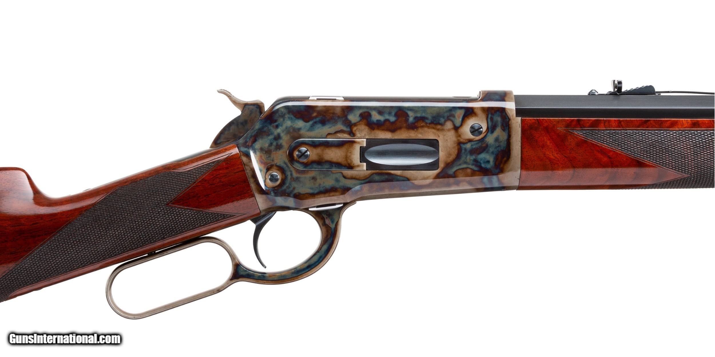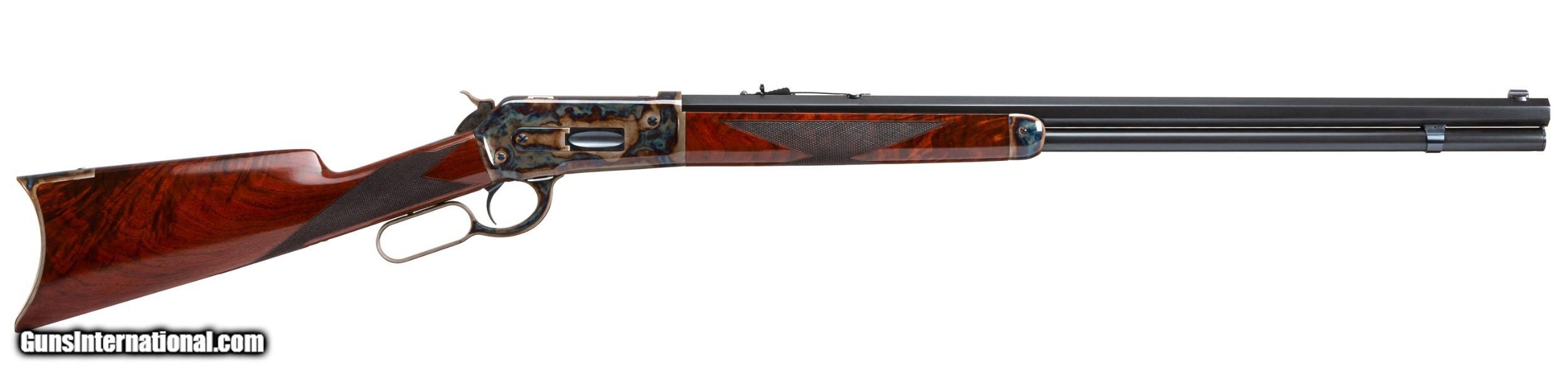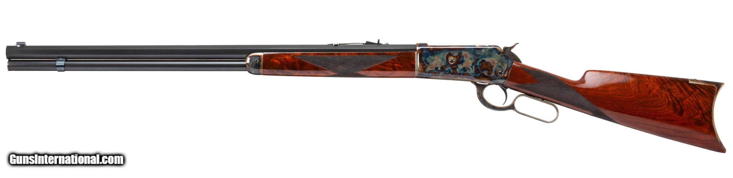 Description: This is a new Turnbull Model 1886 chambered in .45-70 Gov’t., one example of our reproductions of the original Winchester Model 1886 designed by John Moses Browning. The big-bore lever action rifle features a 26″ full octagon barrel and full-length magazine, extra fancy American walnut stocks, “H” pattern checkering in 24lpi, and a crescent butt plate. As with all Turnbull models, this Model 1886 sports period-correct finishes including: color case hardened receiver, lever, hammer, butt plate and forend cap; rust blued barrel and full-length magazine; charcoal blued small parts; hand-rubbed wood finish in classic Winchester red. NOTE: this Turnbull Model 1886 has traveled to several shows and will show some very minor handling marks. Sold as-is. This Model 1886 is fully-finished, in our showroom, and ready for delivery today. Contact us for additional photos or if you have any questions. SOLD Manufacturer: Turnbull Manufacturing Co. Model: 1886 Serial Number: 8600462 Caliber Info: .45-70 Govt Condition: New Barrels: 26 Barrel Type: Full Octagon, Full Magazine Action: Lever Butt Pad: Crescent LOP: 13 Item Location: NY |