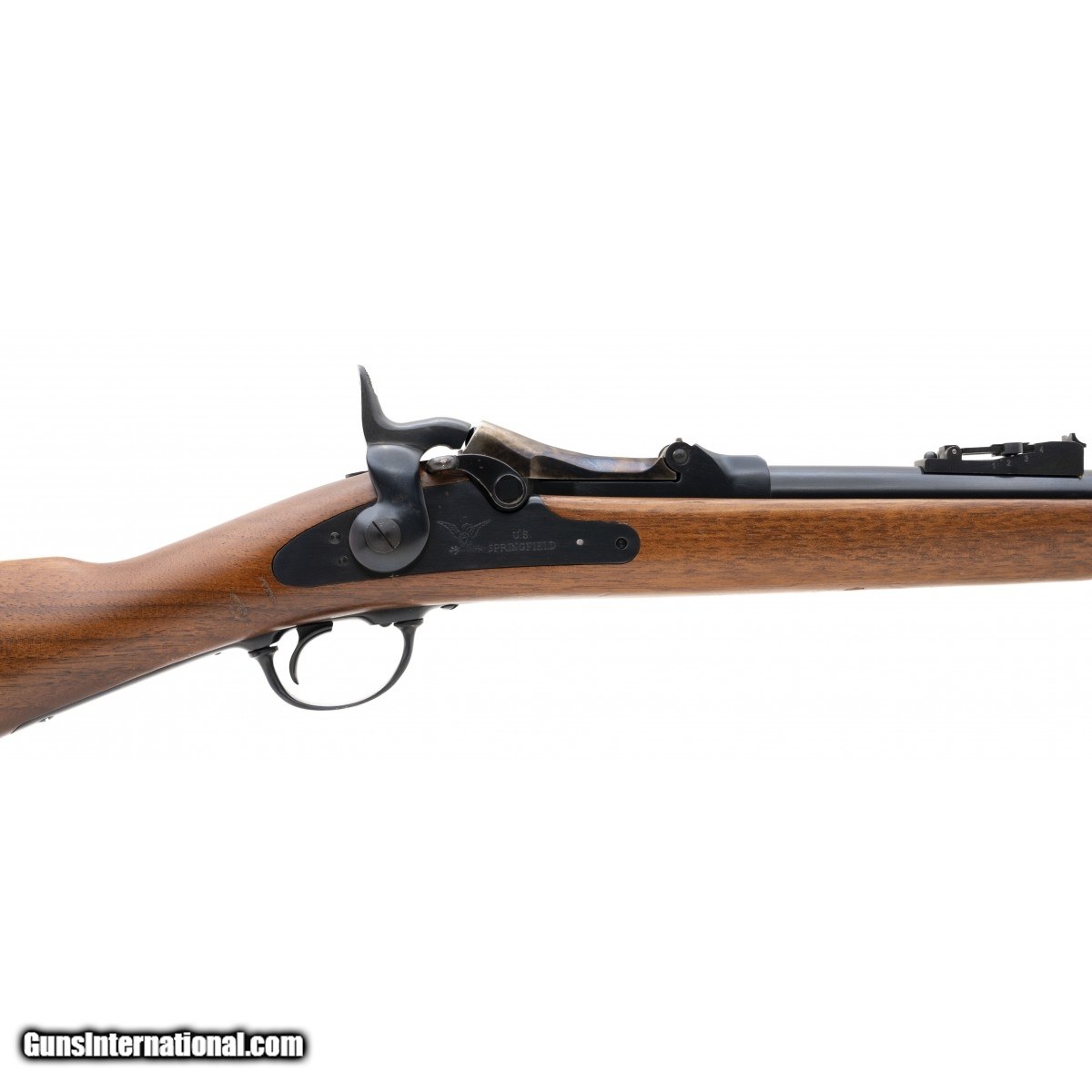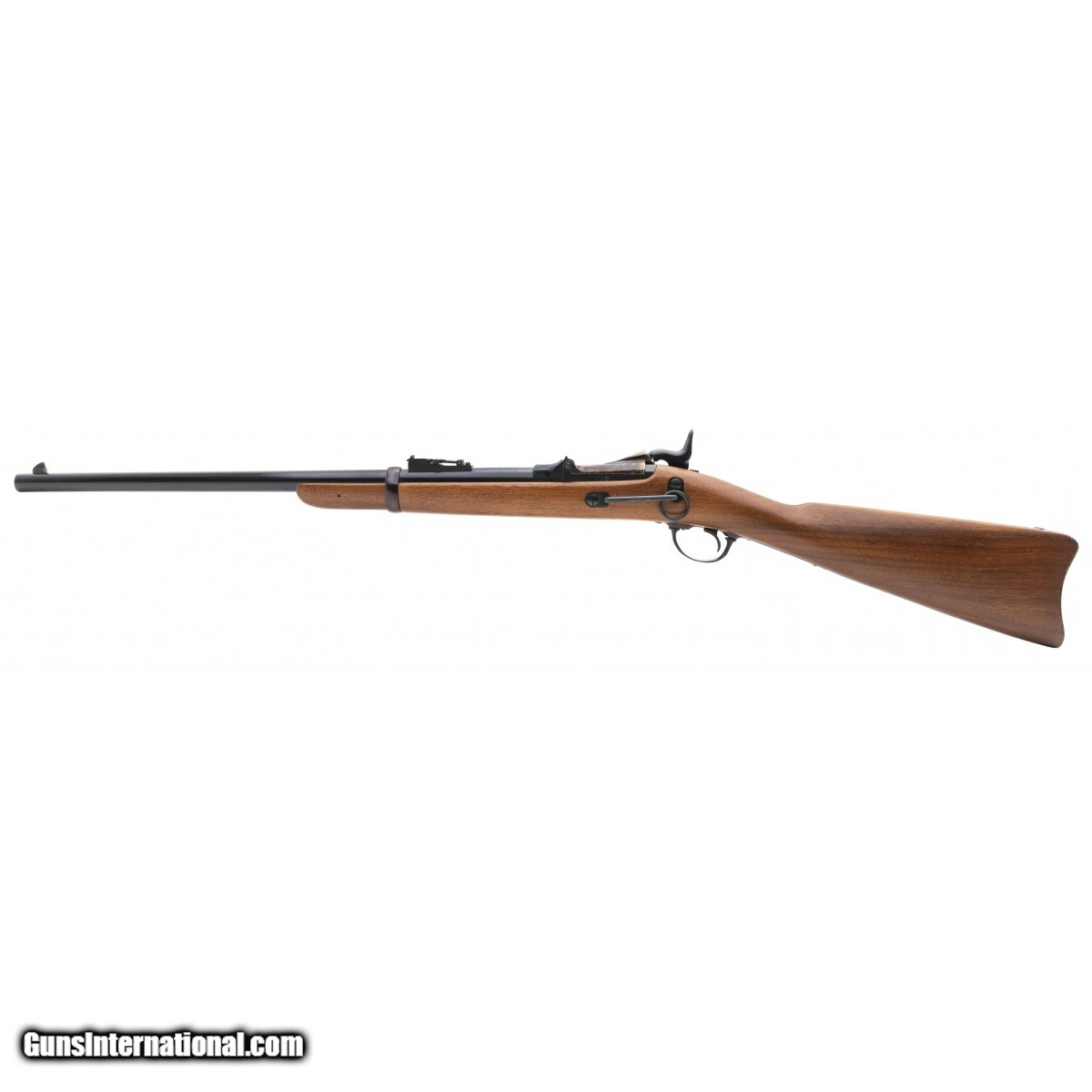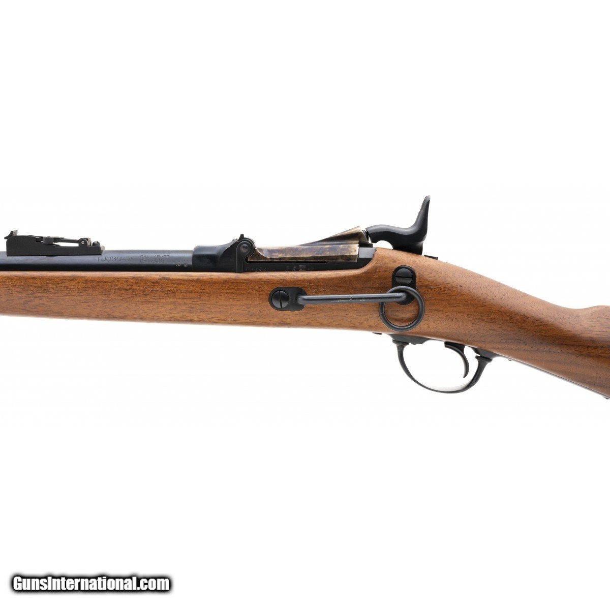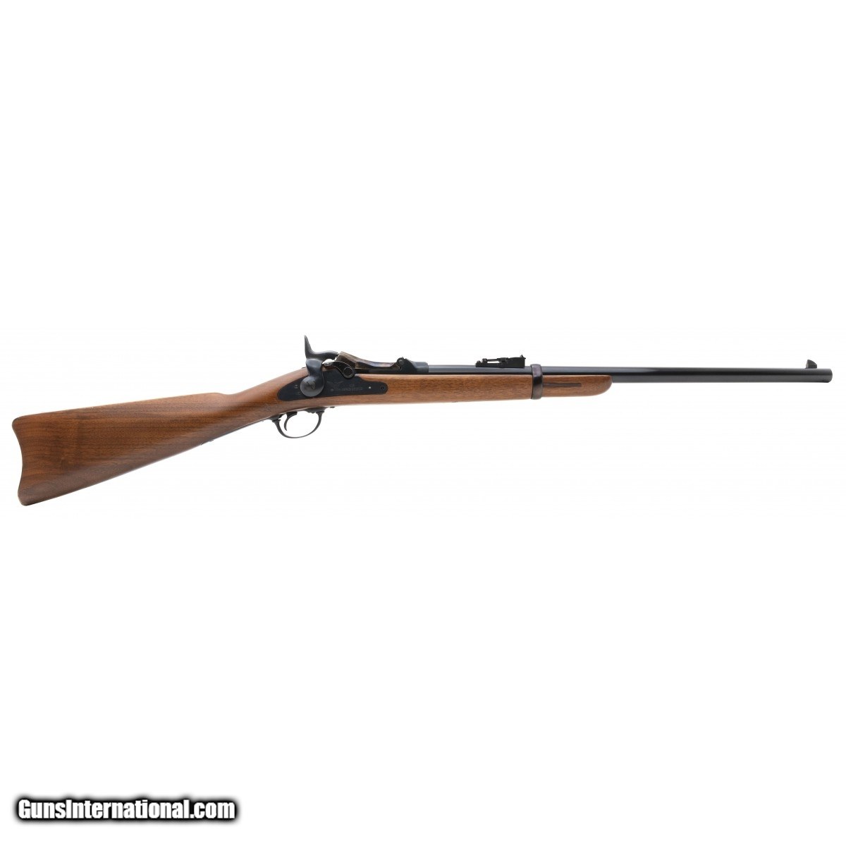 Description: " SN: TD03940. Modern production of Springfield 1873 Trappdoor Carbine with 22"" blued barrel and case colored breech and buttplate. Overall very good condition. SOLD |