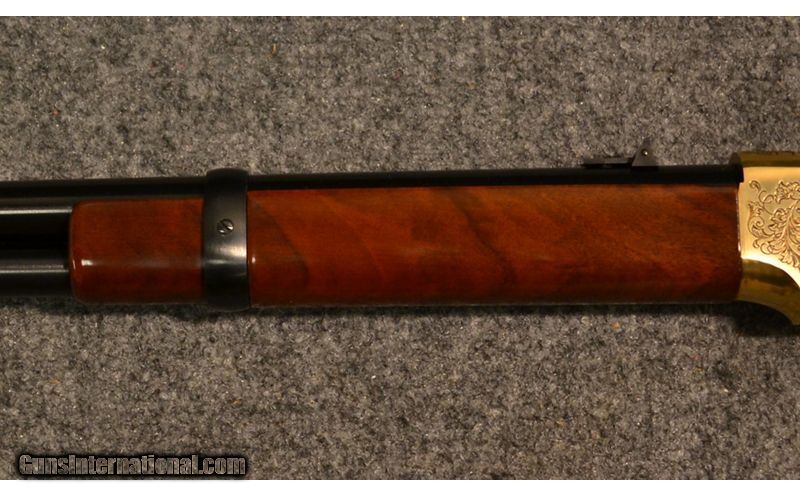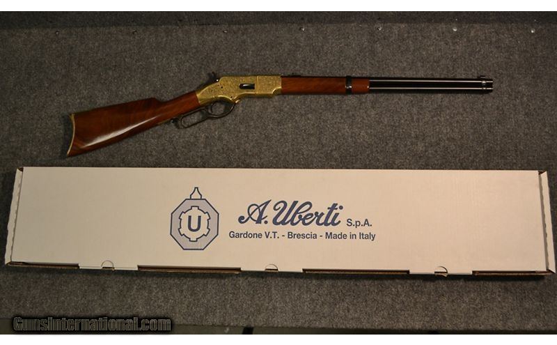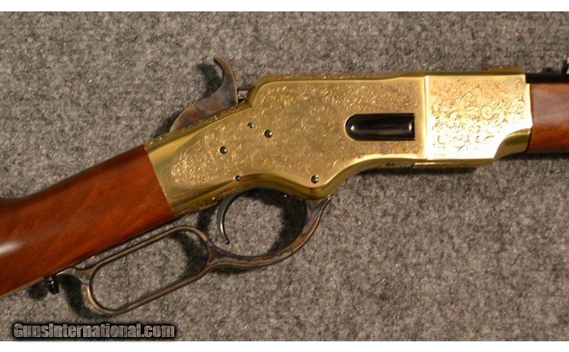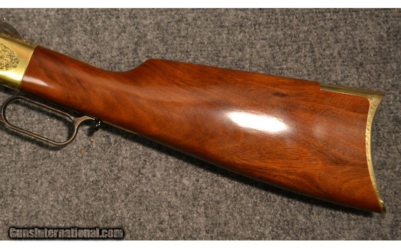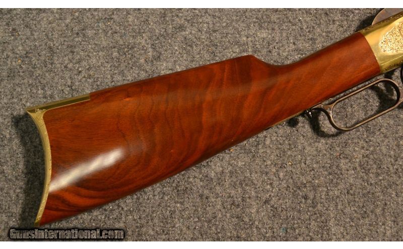 Description: A Uberti model 1866 150th Anniversary chambered in .45 Colt. Only a hundred were made. This is a very nice engraved tribute to the Winchester model 1866. Rifle shows no signs of use, and would be a great addition to any collection. .45 Colt SOLD Chambers: 1 Metal Condition: Excellent Wood Condition: Excellent Bore Condition: Excellent Barrels: 20 Triggers: "Steel, factory Stock Dimensions: 13" LOP Fore End: Smooth Butt Pad: Brass Weight: 7 1/2 lbs Sights: """U"" notch, open Item Location: Thornton, CO |