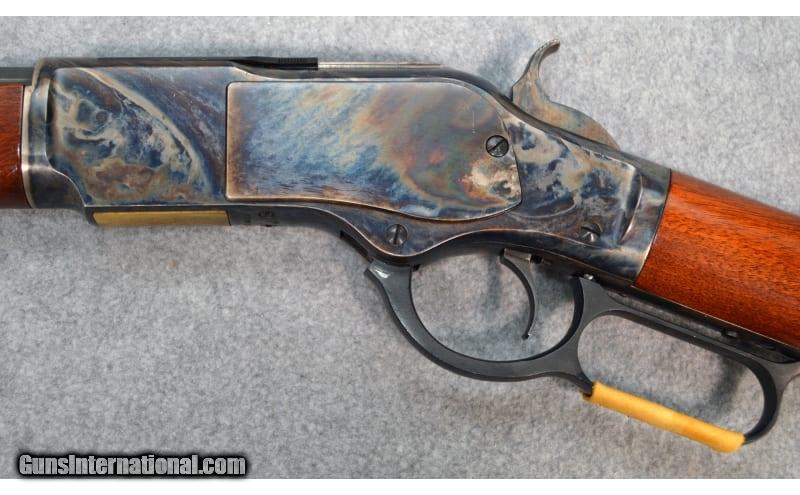 Description: This Uberti rifle is a finely crafted reproduction of "the gun that won the west". It is chambered in .45 Long Colt with a 24" octagonal barrel and Buckhorn rear and blade front sights. The walnut stock and color-case-hardened receivers are in a very good condition. .45 Long Colt SOLD Metal Condition: Very Good Wood Condition: Very Good Barrels: 24 Triggers: Smooth Face Weight: 8 lbs. Sights: Factory Item Location: Louisville, KY |