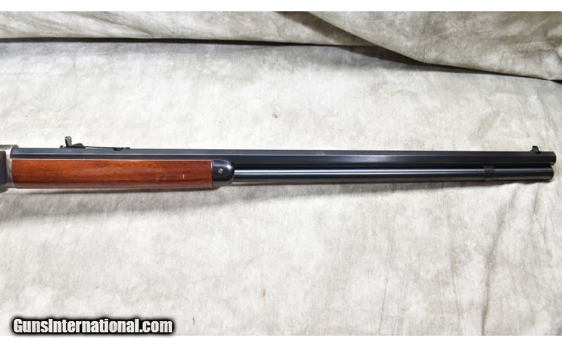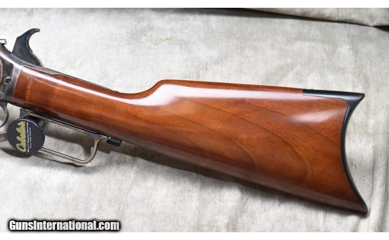 Description: Uberti's reproduction of the Winchester 1876 with King's Improvements, commemorating the USA Centennial. It features a 28-inch octagonal barrel, full-length (11-round) magazine, case colored receiver and blued barrel. It has a cartridge storage port in the stock. .45-75 Winchester SOLD Chambers: 11-round magazine. Metal Condition: Excellent Wood Condition: Excellent Bore Condition: Bright and shiny with sharp rifling. Barrels: 28-inch octagonal. Triggers: Factory trigger. Stock Dimensions: 13-inch LOP. Fore End: Well-matched walnut. Butt Pad: Curved steel plate. Weight: 10 lb - 2 oz Sights: Post and buckhorn open sights. Item Location: Rogers |