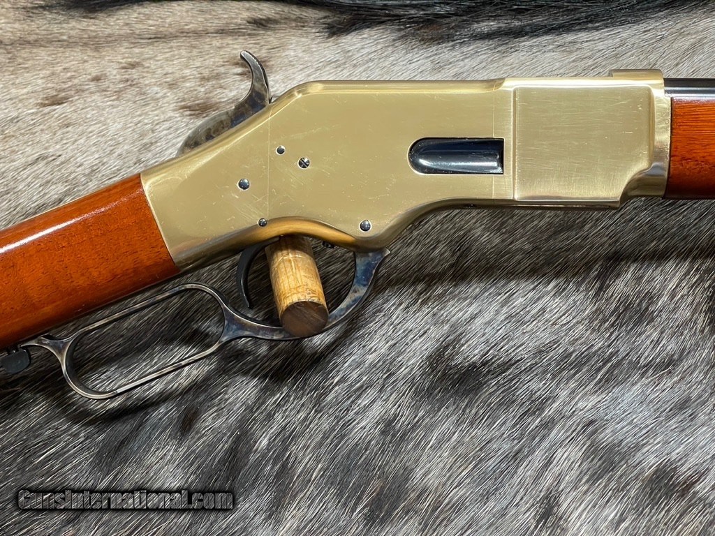 Description: NEW 1866 WINCHESTER YELLOWBOY CARBINE TRAPPER IN 45 COLT BY UBERTI / CIMARRON - LAYAWAY AVAILABLE. THE RIFLE YOU SEE ABOVE IS THE RIFLE YOU WILL RECEIVE! Features Of This GREAT Lever Action Rifle Include: