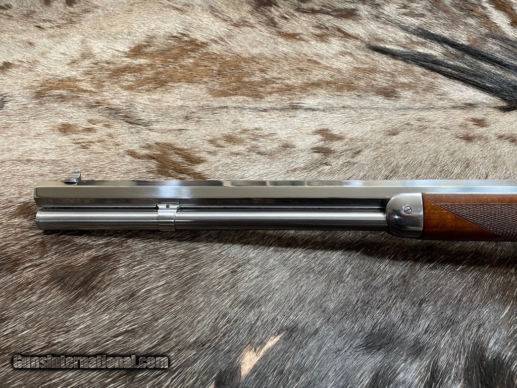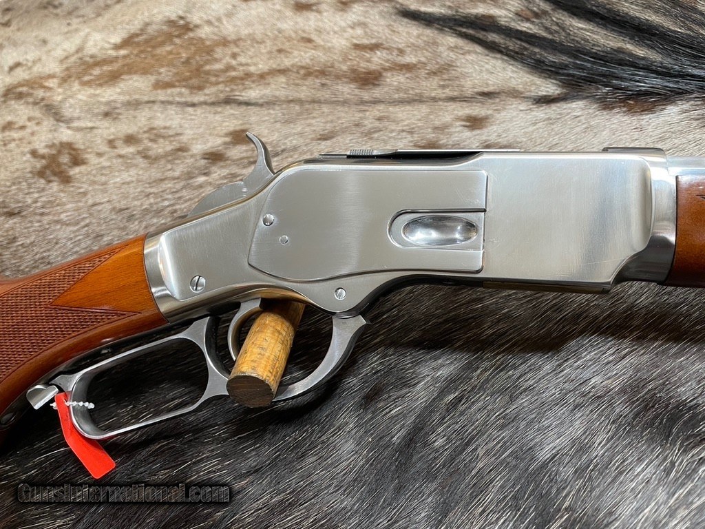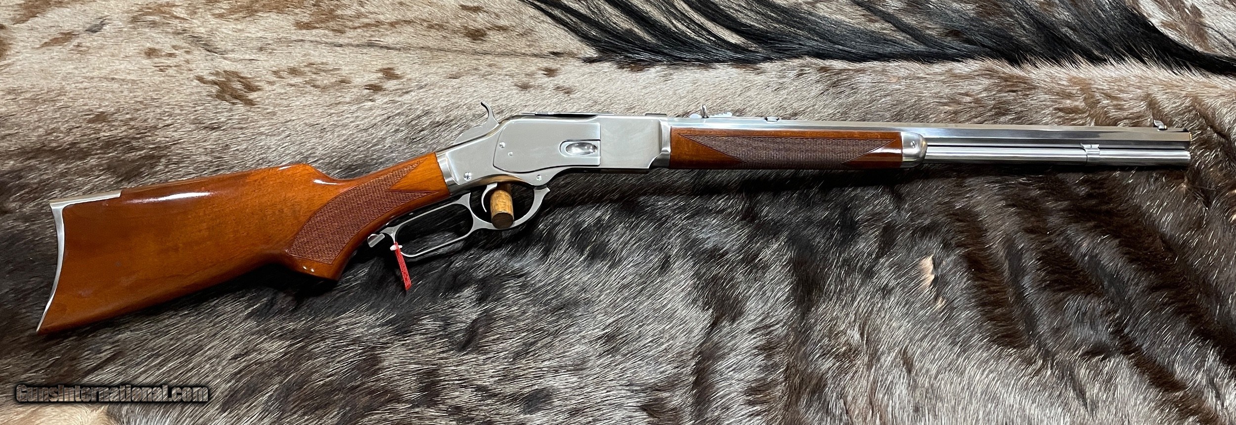 Description: NEW 1873 WINCHESTER SPECIAL SPORTING "IN-THE-WHITE" RIFLE IN 45 COLT BY UBERTI / TAYLORS - LAYAWAY AVAILBLE THIS "IN-THE-WHITE" RIFLE IS NOT STAINLESS STEEL OR NICKEL. THE METAL IS A SPECIAL ALLOY THAT IS HEAT-TREATED TO SEAL THE SURFACE (SIMILAR TO BLUING) AND BE RUST-RESISTANT. ALL YOU NEED TO DO TO CARE FOR THIS RIFLE IS KEEP IT OILED LIKE YOU WOULD ANY OTHER RIFLE. THE RIFLE YOU SEE ABOVE IS THE RIFLE YOU WILL RECEIVE! Features of this GREAT Lever Action Rifle Include: