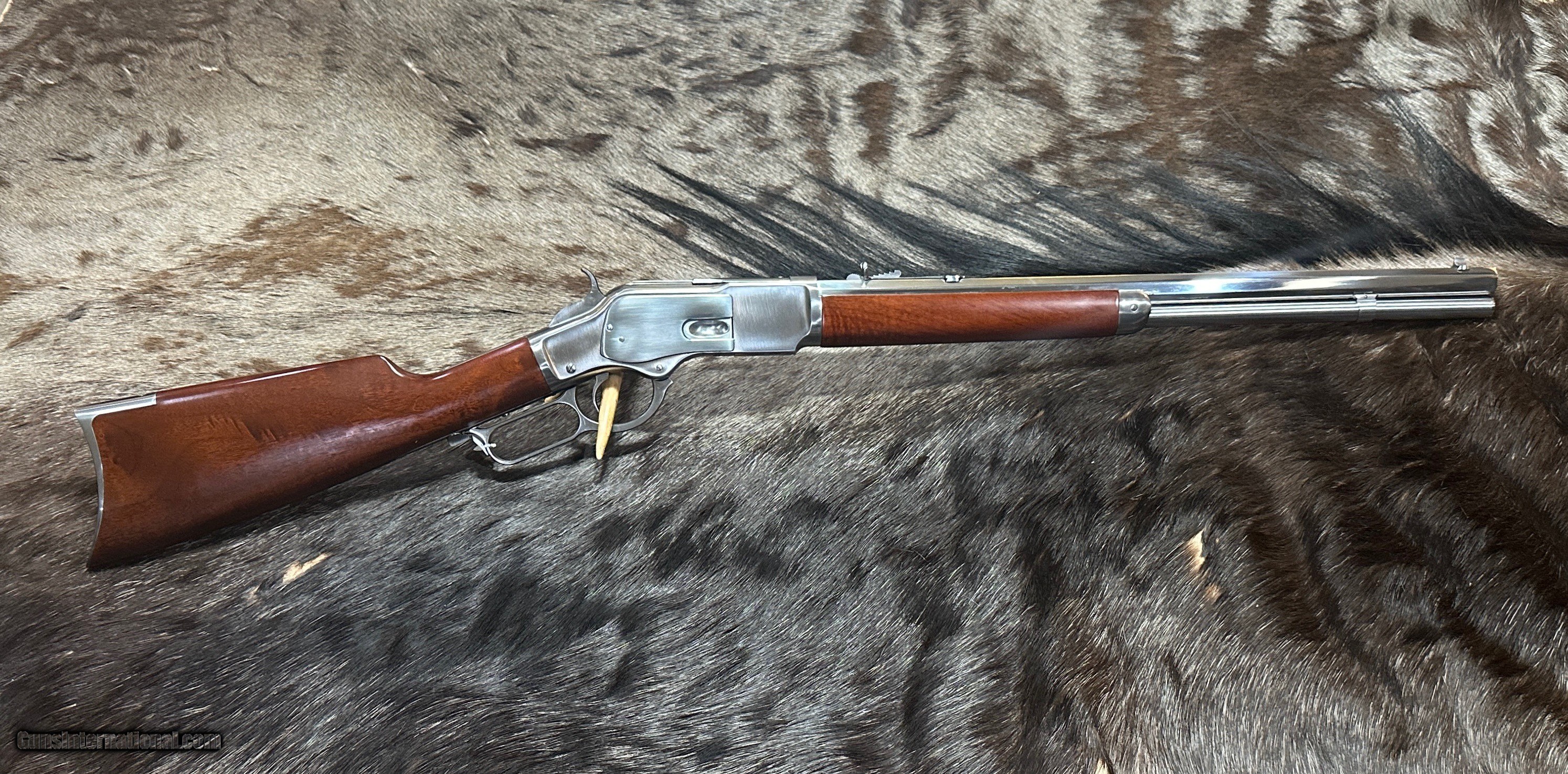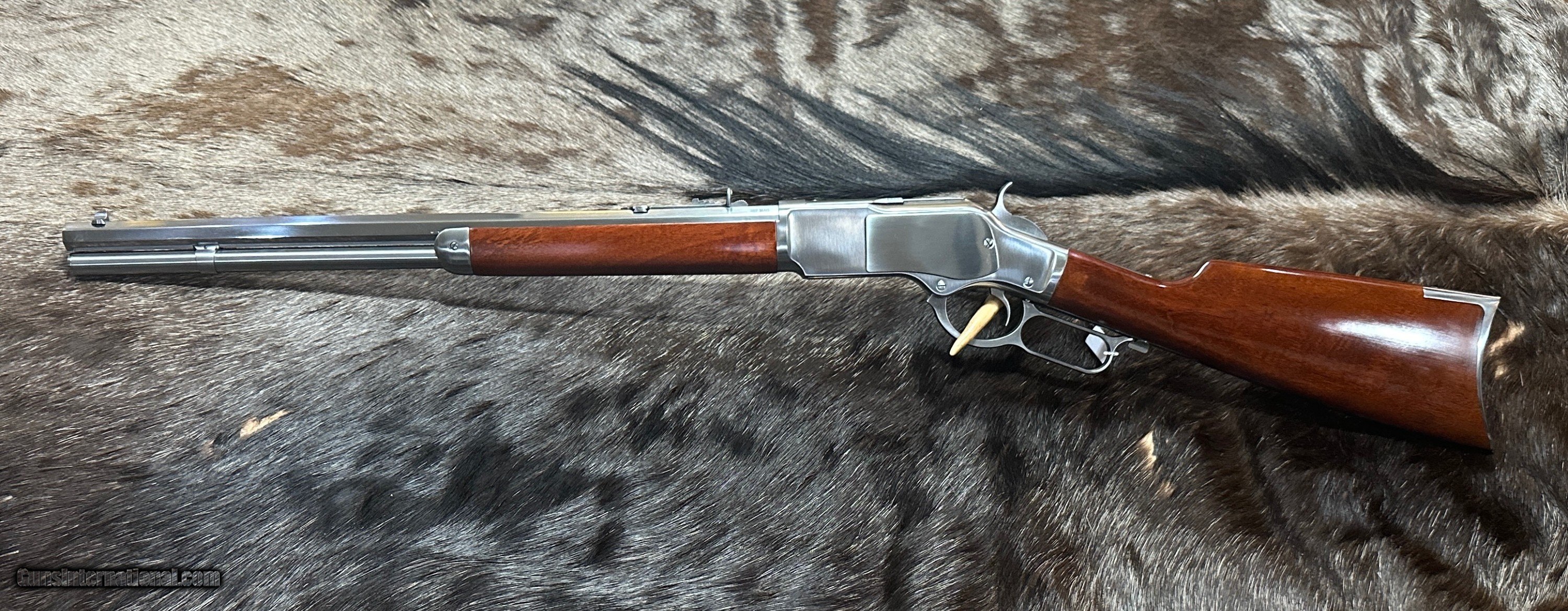 Description: NEW UBERTI 1873 WINCHESTER 'IN-THE-WHITE" SPORTING RIFLE IN 357 MAGNUM / 38 SPECIAL - LAYAWAY AVAILABLE THIS "IN-THE-WHITE" RIFLE IS NOT STAINLESS STEEL OR NICKEL. THE METAL IS A SPECIAL ALLOY THAT IS HEAT-TREATED TO SEAL THE SURFACE (SIMILAR TO BLUING) AND BE RUST-RESISTANT. ALL YOU NEED TO DO TO CARE FOR THIS RIFLE IS KEEP IT OILED LIKE YOU WOULD ANY OTHER RIFLE. UNLIKE OTHER SELLERS, JD OUTFITTERS DOES NOT DROP-SHIP FROM A THIRD-PARTY WAREHOUSE OR USE STOCK OR GENERIC PHOTOS. THE RIFLE YOU SEE IS IN INVENTORY, READY TO SHIP, AND IS THE RIFLE YOU WILL RECEIVE! Features of this GREAT Lever Action Rifle Include: