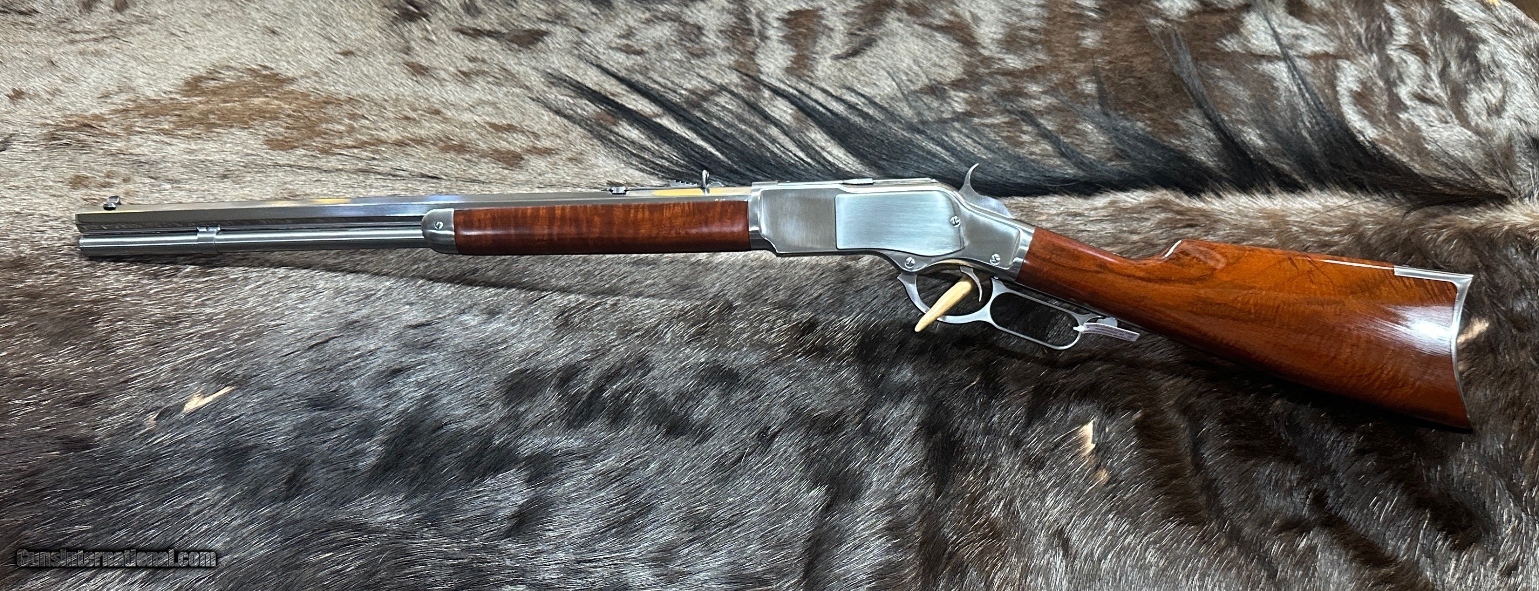 Description: NEW UBERTI 1873 WINCHESTER 'IN-THE-WHITE" SPORTING RIFLE IN 357 MAGNUM / 38 SPECIAL - LAYAWAY AVAILABLE THIS "IN-THE-WHITE" RIFLE IS NOT STAINLESS STEEL OR NICKEL. THE METAL IS A SPECIAL ALLOY THAT IS HEAT-TREATED TO SEAL THE SURFACE (SIMILAR TO BLUING) AND BE RUST-RESISTANT. ALL YOU NEED TO DO TO CARE FOR THIS RIFLE IS KEEP IT OILED LIKE YOU WOULD ANY OTHER RIFLE. UNLIKE OTHER SELLERS, JD OUTFITTERS DOES NOT DROP-SHIP FROM A THIRD-PARTY WAREHOUSE OR USE STOCK OR GENERIC PHOTOS. THE RIFLE YOU SEE IS IN INVENTORY, READY TO SHIP, AND IS THE RIFLE YOU WILL RECEIVE! Features of this GREAT Lever Action Rifle Include: