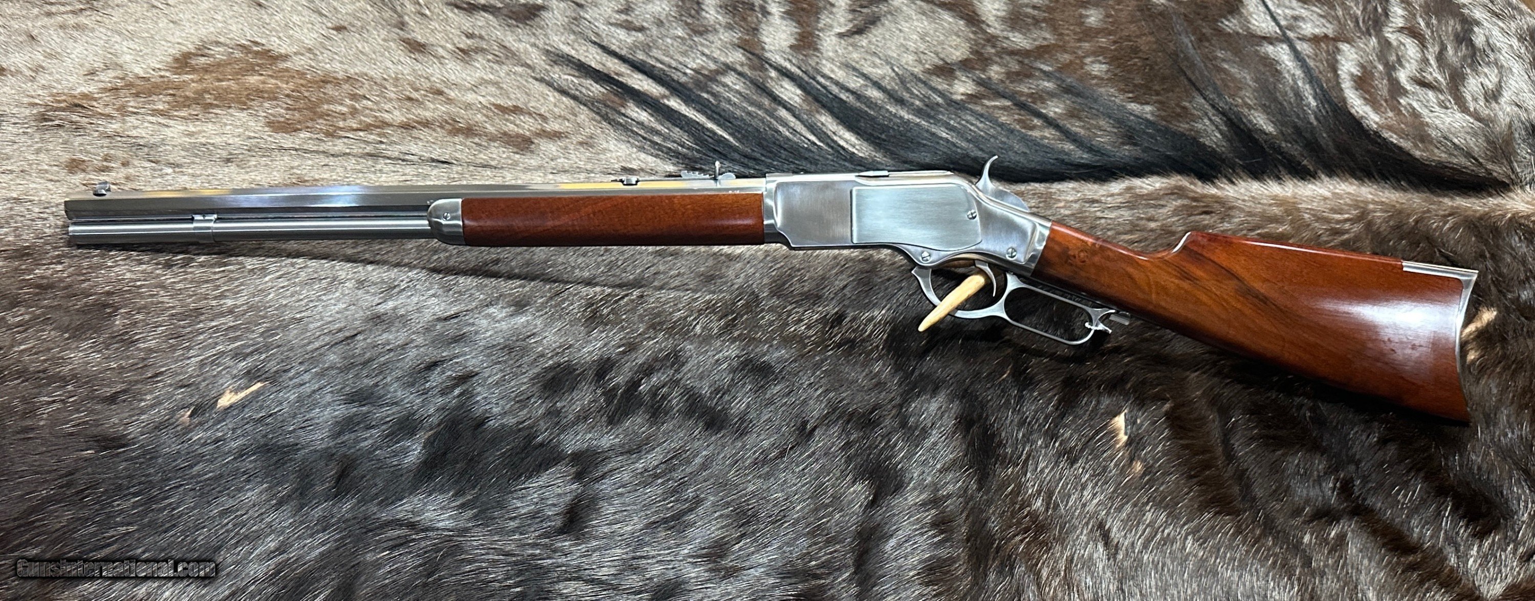 Description: NEW UBERTI 1873 WINCHESTER 'IN-THE-WHITE" SPORTING RIFLE IN 357 MAGNUM / 38 SPECIAL - LAYAWAY AVAILABLE THIS "IN-THE-WHITE" RIFLE IS NOT STAINLESS STEEL OR NICKEL. THE METAL IS A SPECIAL ALLOY THAT IS HEAT-TREATED TO SEAL THE SURFACE (SIMILAR TO BLUING) AND BE RUST-RESISTANT. ALL YOU NEED TO DO TO CARE FOR THIS RIFLE IS KEEP IT OILED LIKE YOU WOULD ANY OTHER RIFLE. UNLIKE OTHER SELLERS, JD OUTFITTERS DOES NOT FALSELY CLAIM TO HAVE “INVENTORY” BUT THEN DROP-SHIPS SOME UNKNOWN AND UNSEEN RIFLE FROM A THIRD-PARTY WAREHOUSE. NOR DOES JD OUTFITTERS USE STOCK OR GENERIC PHOTOS. THE RIFLE YOU SEE IS IN INVENTORY, READY TO SHIP, AND IS THE RIFLE YOU WILL RECEIVE! Features of this GREAT Lever Action Rifle Include:
