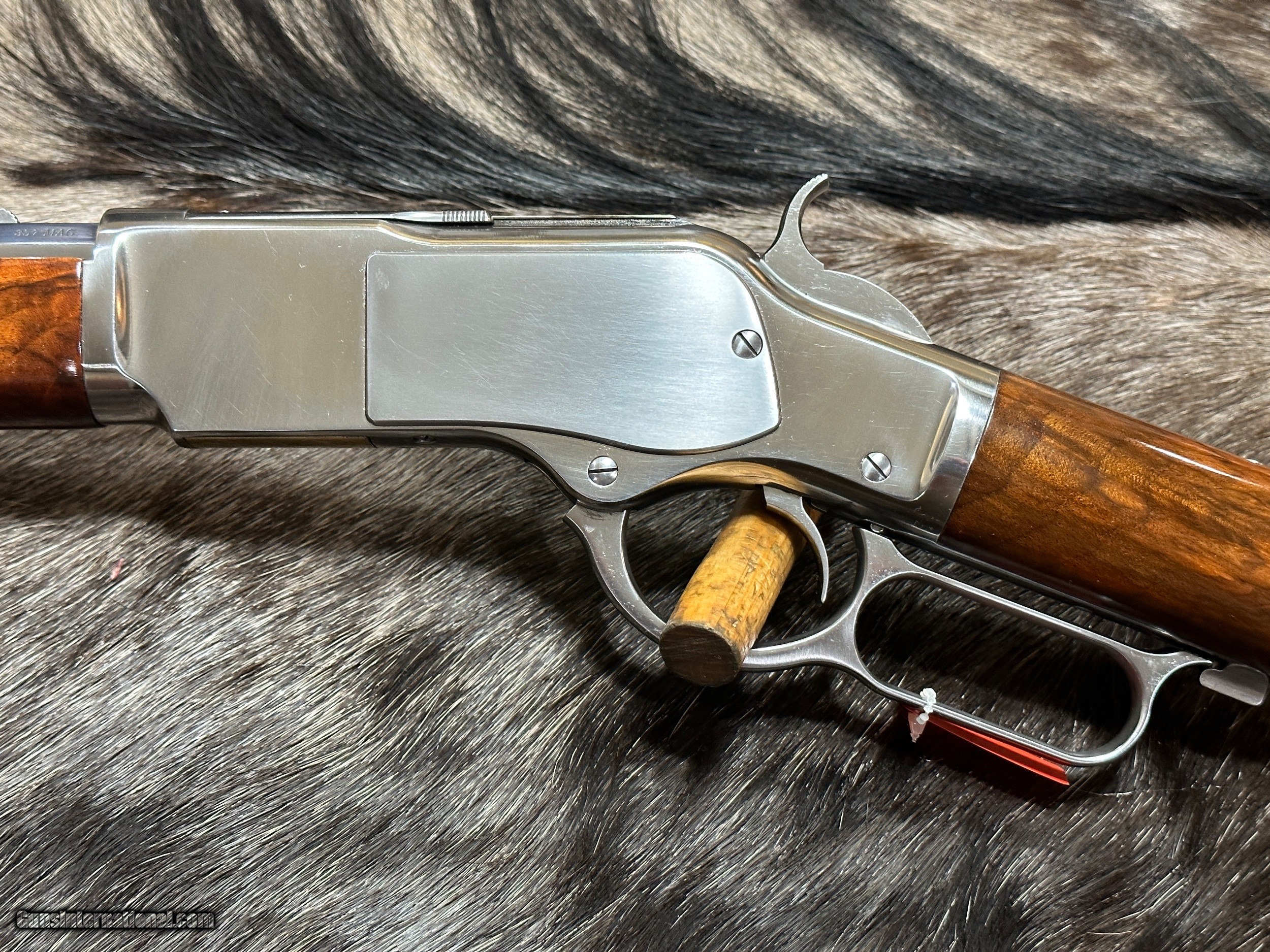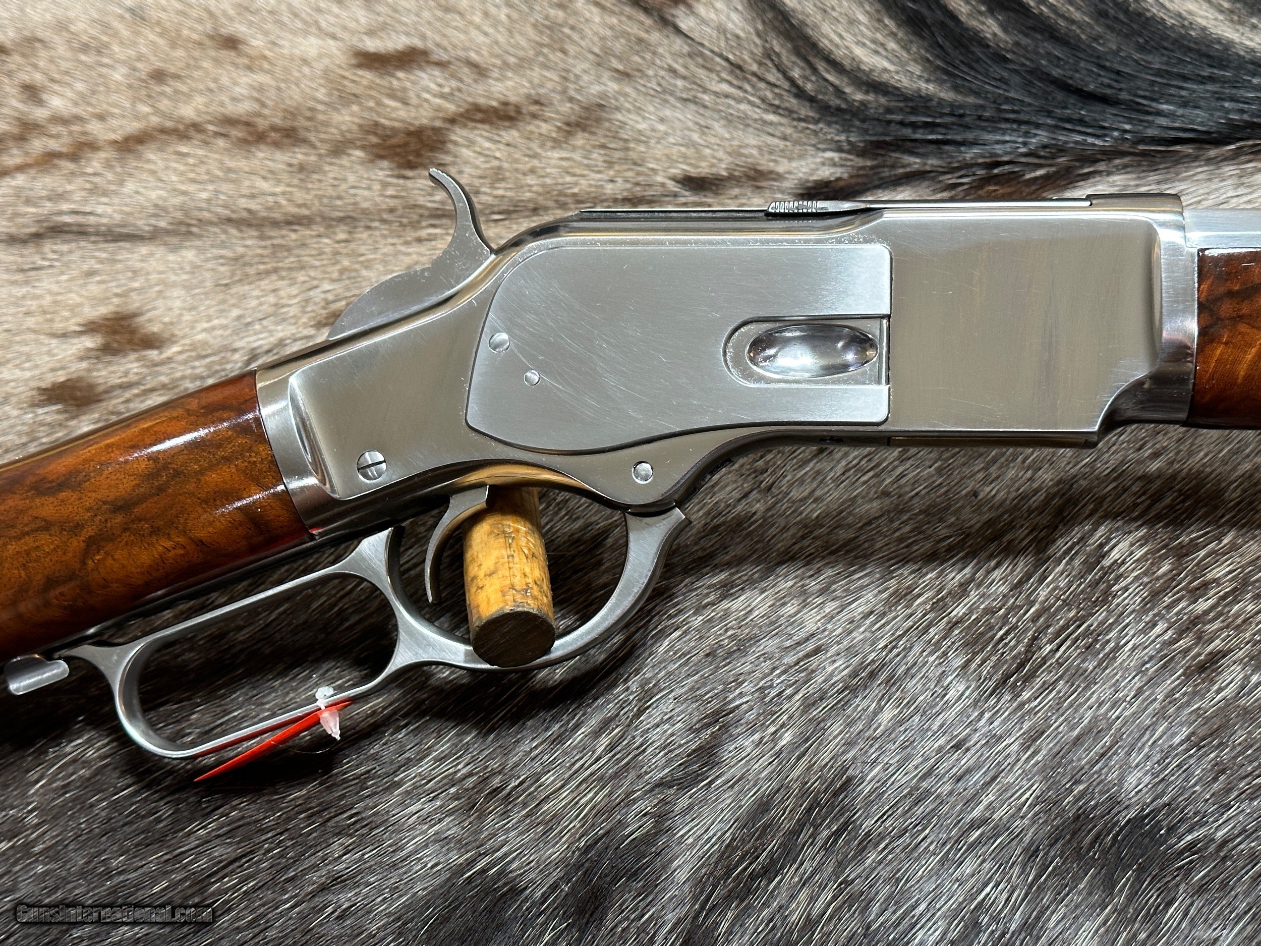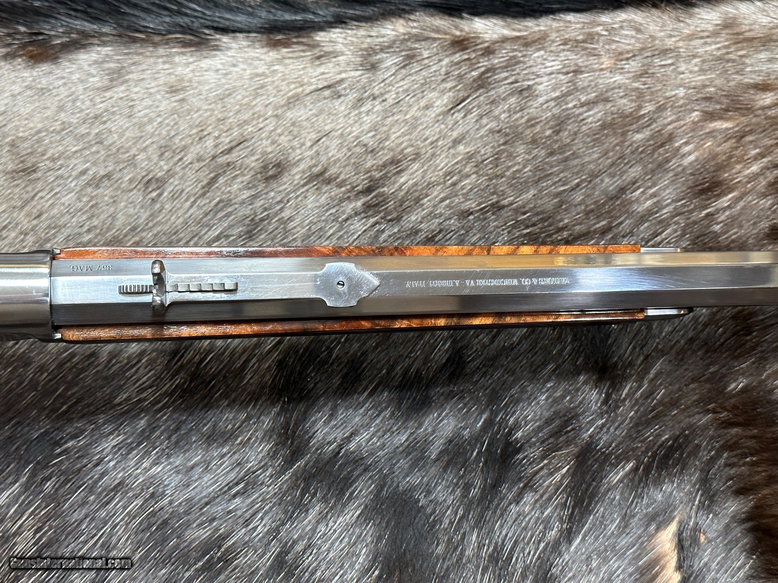 Description: EXCLUSIVE TO JD OUTFITTERS ONLY -- NEW EXHIBITION GRADE WOOD 1873 WINCHESTER 'IN-THE-WHITE" SPORTING RIFLE IN 357 MAGNUM BY UBERTI TAYLORS - LAYAWAY AVAILABLE THIS 1873 RIFLE CAN ONLY BE FOUND AT JD OUTFITTERS AND IS A CUSTOM ORDER FROM ITALY THIS "IN-THE-WHITE" RIFLE IS NOT STAINLESS STEEL OR NICKEL. THE METAL IS A SPECIAL ALLOY THAT IS HEAT-TREATED TO SEAL THE SURFACE (SIMILAR TO BLUING) AND BE RUST-RESISTANT. ALL YOU NEED TO DO TO CARE FOR THIS RIFLE IS KEEP IT OILED LIKE YOU WOULD ANY OTHER RIFLE. THE RIFLE YOU SEE ABOVE IS THE RIFLE YOU WILL RECEIVE! Features of this GREAT Lever Action Rifle Include: