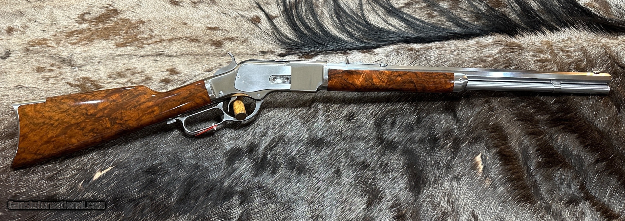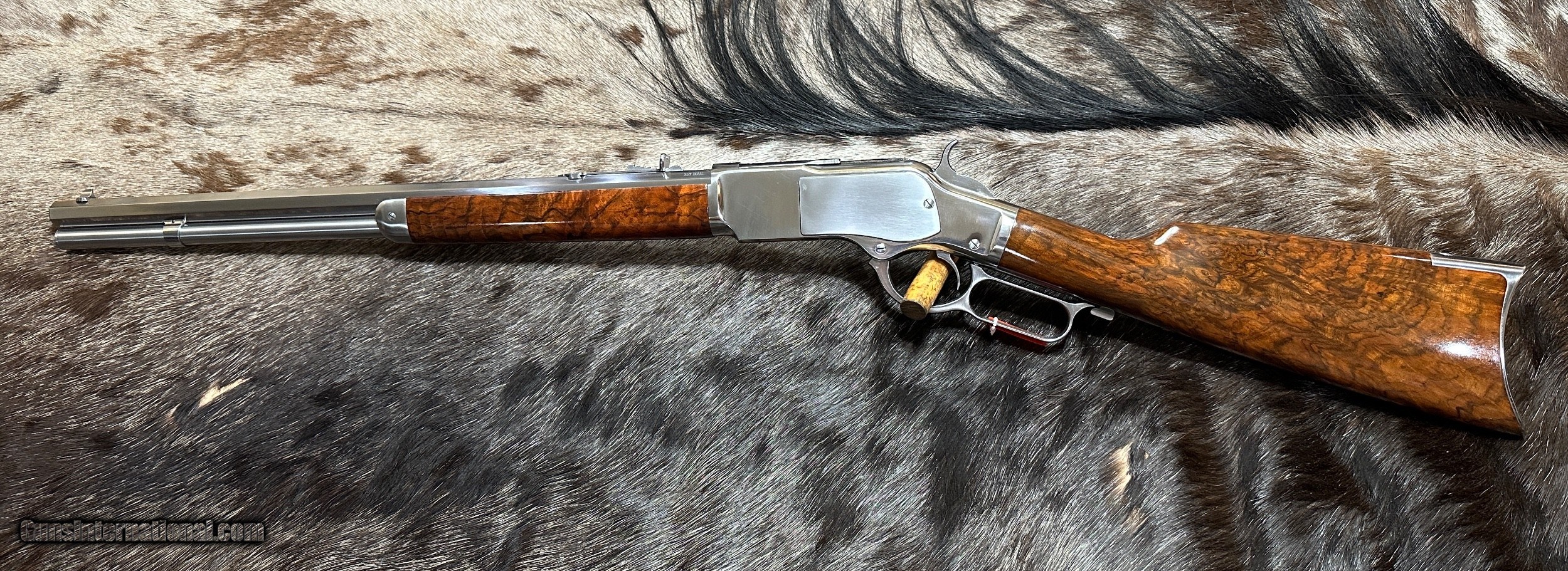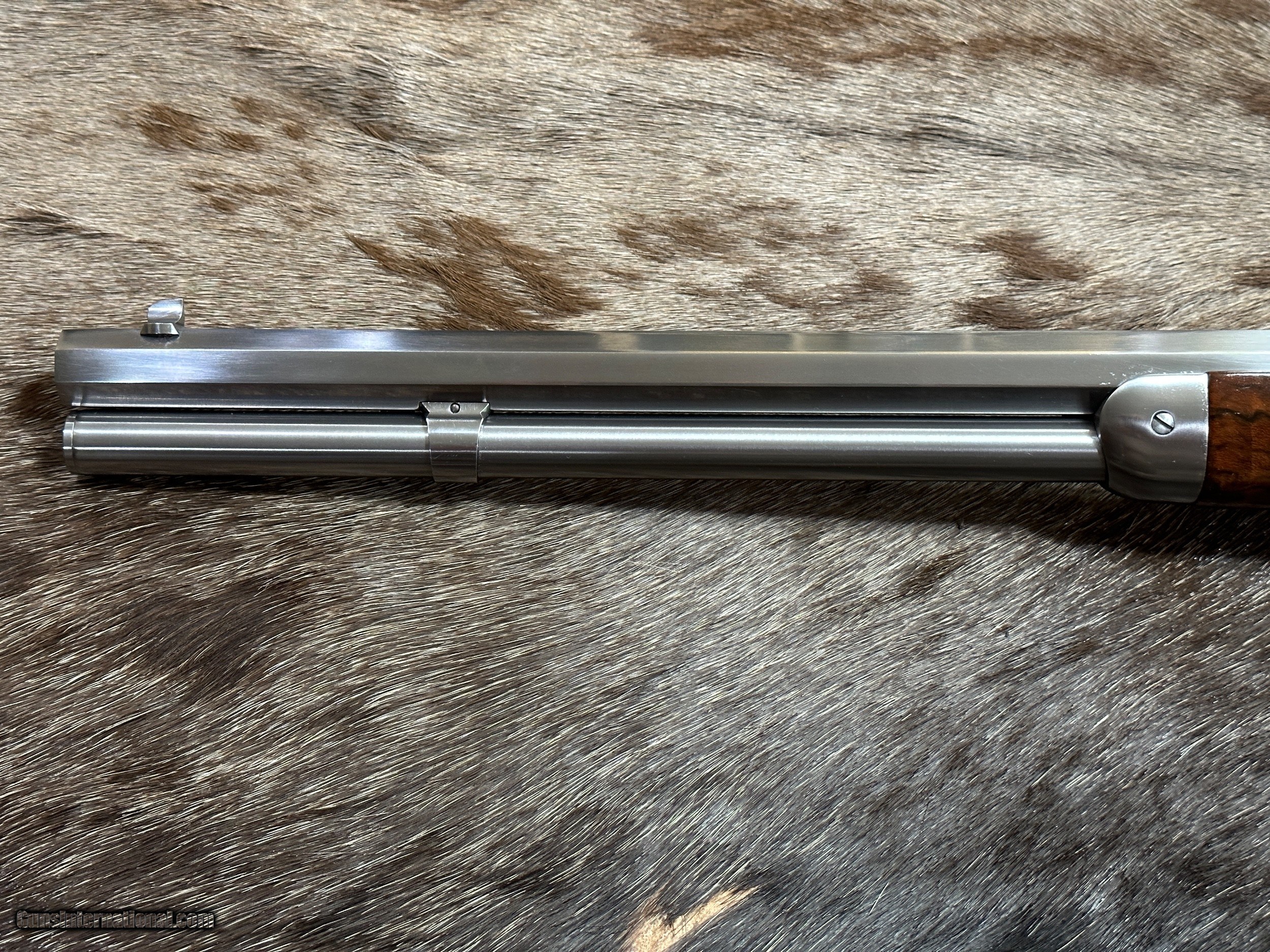 Description: EXCLUSIVE TO JD OUTFITTERS ONLY -- NEW EXHIBITION GRADE WOOD 1873 WINCHESTER 'IN-THE-WHITE" SPORTING RIFLE IN 357 MAGNUM BY UBERTI TAYLORS - LAYAWAY AVAILABLE THIS 1873 RIFLE CAN ONLY BE FOUND AT JD OUTFITTERS AND IS A CUSTOM ORDER FROM ITALY THIS "IN-THE-WHITE" RIFLE IS NOT STAINLESS STEEL OR NICKEL. THE METAL IS A SPECIAL ALLOY THAT IS HEAT-TREATED TO SEAL THE SURFACE (SIMILAR TO BLUING) AND BE RUST-RESISTANT. ALL YOU NEED TO DO TO CARE FOR THIS RIFLE IS KEEP IT OILED LIKE YOU WOULD ANY OTHER RIFLE. THE RIFLE YOU SEE ABOVE IS THE RIFLE YOU WILL RECEIVE! Features of this GREAT Lever Action Rifle Include: