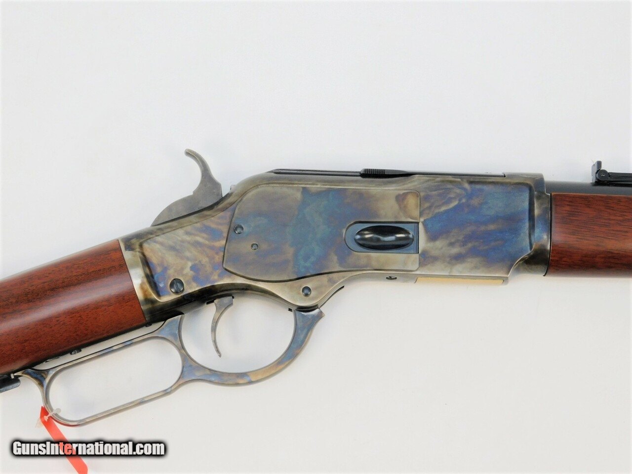 Description: Manufacturer: Taylor's & Co. / Uberti Model: 1873 Carbine Lever SKU: RIF/270CH Caliber: .357 Magnum Capacity: 10 Rounds Barrel Length: 19" Finish: Case Hardened Frame, Blued Barrel Stock: Walnut Straight Stock OAL: 37.87" Sights: Ladder Rear, Blade Front Weight: 7.48 lbs All items are factory new in box unless otherwise stated. Based on the information available to us, the above specifications describe this item to the best of our knowledge. For further information, please contact or visit the manufacturer's . SOLD |