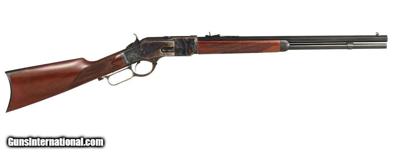 Description: Manufacturer: Taylor's & Co. / Uberti Model: 1873 Checkered Straight Stock Rifle SKU: 550220 Caliber: .357 Magnum Capacity: 10 Rounds Barrel Length: 20" Octagon Finish: Blued Barrel, Case Hardened Frame Stock: Checkered Walnut Straight Stock Sights: Blade Front, Buckhorn Rear Overall Length: 39" Weight: 7.9 lbs All items are factory new in box unless otherwise stated. Based on the information available to us, the above specifications describe this item to the best of our knowledge. For further information, please contact or visit the manufacturer's . SOLD |