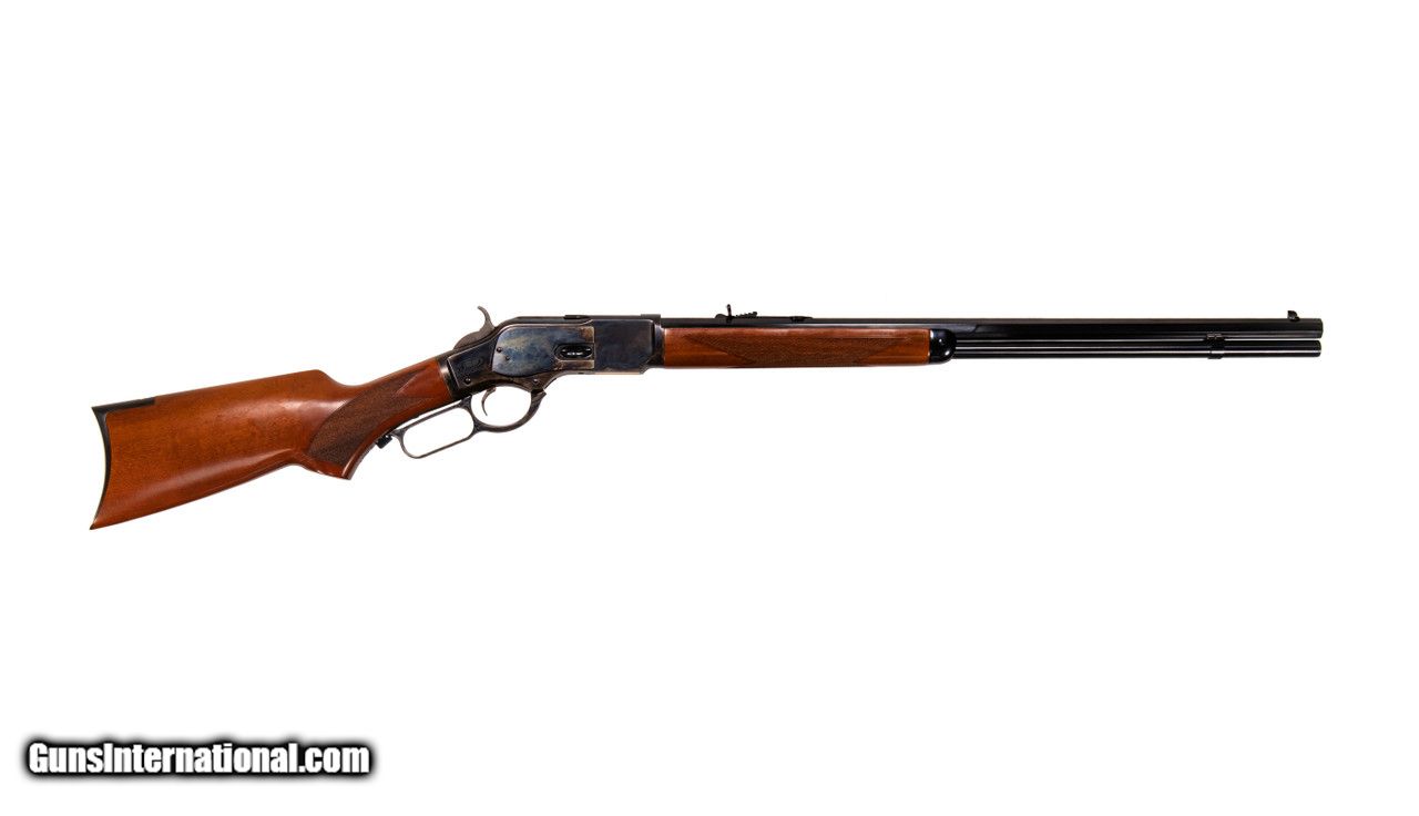 Description: Manufacturer: Taylor's & Co. / Uberti Model: 1873 Pistol Grip Lever Action Rifle SKU: 550093 Caliber: .357 Magnum Capacity: 13 Rounds Barrel Length: 24.25" Octagonal Finish: Blued Finish with Case Hardened Frame Stock: Walnut Checkered Pistol Grip Stock Sights: Blade Front, Buckhorn Rear Overall Length: 43.25" Weight: 8.2 lbs All items are factory new in box unless otherwise stated. Based on the information available to us, the above specifications describe this item to the best of our knowledge. For further information, please contact or visit the manufacturer's . SOLD |