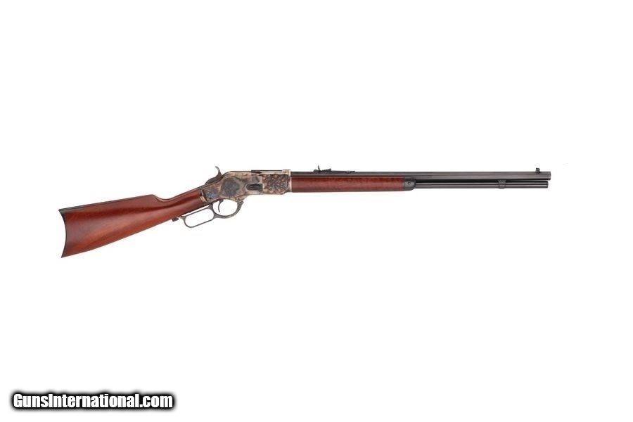 Description: Manufacturer: Taylor's & Co. Model: 1873 Lever Action Straight Stock - Taylor Tuned SKU: RIF/200EDE Caliber: .45 LC Capacity: 10 Rounds Barrel Length: 20" Octagonal Overall Length: 39" Weight: 7.9 lbs Stock: Walnut Straight Forend: Walnut Finish: Blued Barrel, Case Hardened Frame Sights: Buckhorn Rear Sight, Blade Front Sight All items are factory new in box unless otherwise stated. Based on the information available to us, the above specifications describe this item to the best of our knowledge. For further information, please contact or visit the manufacturer's . SOLD |