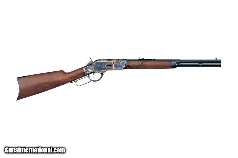 Description: Manufacturer: Taylor's & Co. / Uberti Model: 1873 Straight Stock Lever Action Rifle SKU: 550197 Caliber: .357 Magnum Capacity: 10 Rounds Barrel Length: 18" Half Octagonal Finish: Blued Finish with Case Hardened Frame Stock: Walnut Straight Stock Sights: Blade Front, Buckhorn Rear Overall Length: 36.87" Weight: 7.39 lbs All items are factory new in box unless otherwise stated. Based on the information available to us, the above specifications describe this item to the best of our knowledge. For further information, please contact or visit the manufacturer's . SOLD |