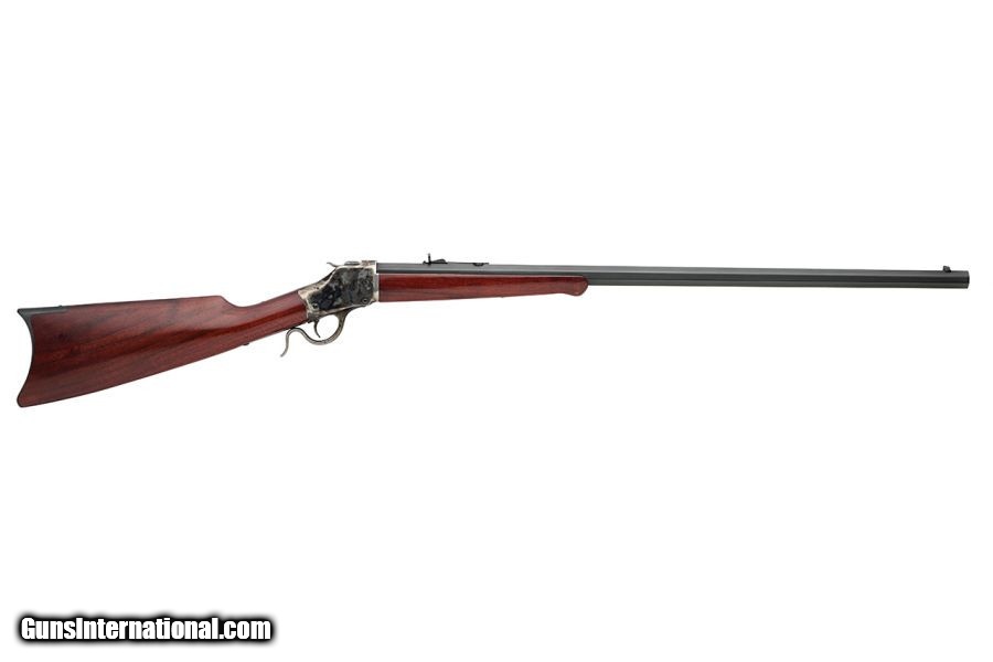 Description: Manufacturer: Taylor's & Co. / Uberti Model: 1885 Single Shot High-Wall SKU: 550217 Caliber: .45-70 Government Capacity: Single Shot Barrel Length: 32" Octagonal Single Trigger Finish: Case Hardened Frame, Blued Barrel Stock: Walnut Straight Stock OAL: 49" Sights: Buckhorn Rear, Blade Front Weight: 10 lbs All items are factory new in box unless otherwise stated. Based on the information available to us, the above specifications describe this item to the best of our knowledge. For further information, please contact or visit the manufacturer's . SOLD |