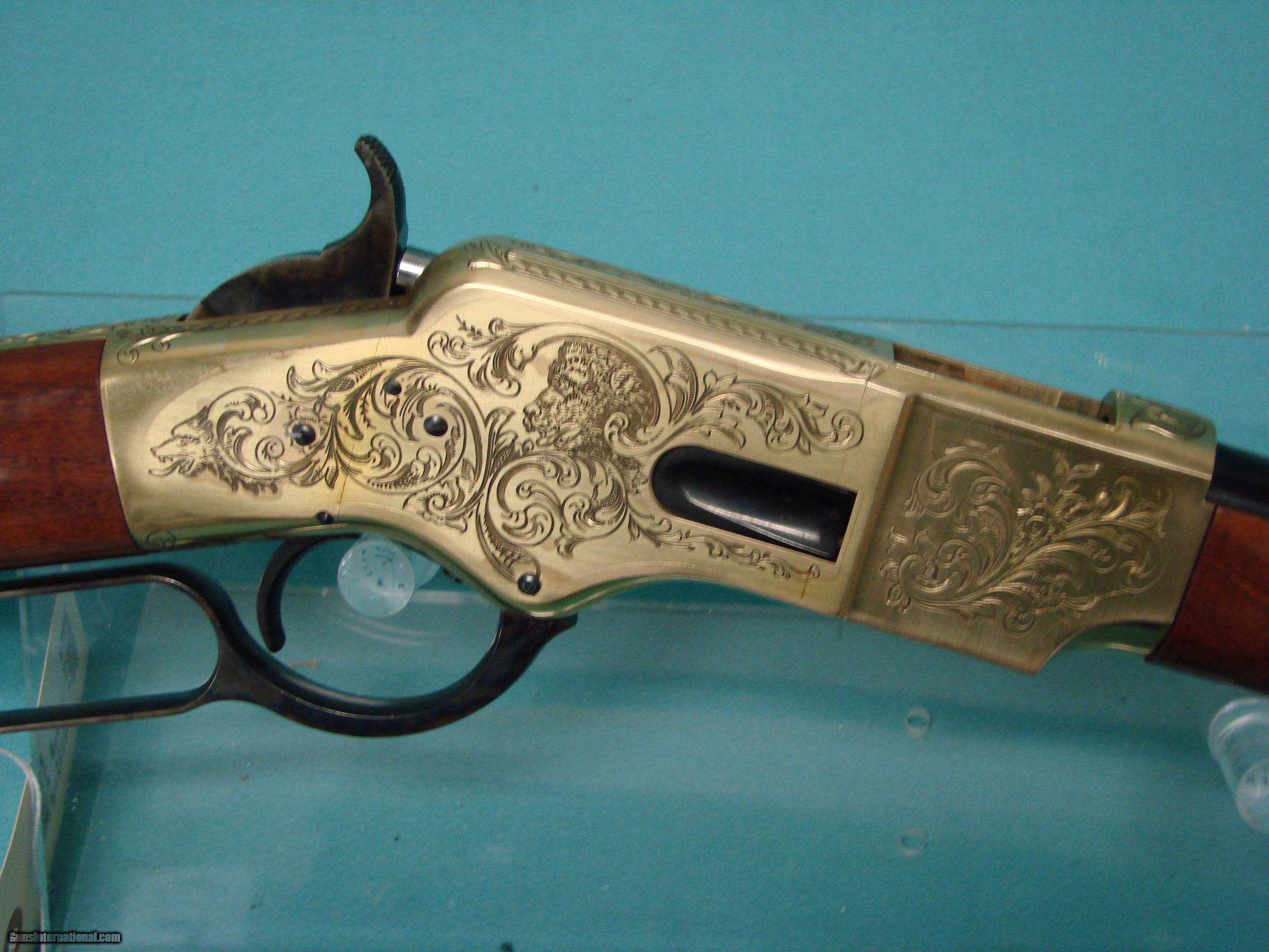 Description: Uberti 1866 Yellowboy 150th Anniversary edition. Polished brass reciever with engraving. Rifle is in 45Colt with a 20" round barrel. Brand new with box. *No extra fees, You only pay for the cost of the item & $35 for shipping{AK&HI Extra} Arizona Residents Must Pay Sales Tax. *Legendary Guns in Phoenix AZ 602-242-1195 Hours of operation M-F 10-6 Sat 10-5 Closed Sundays. *All items online are also for sale at our Phoenix location *Please call the shop for any questions and to confirm availability before buying. We are happy to answer all questions. *We offer a 3 day inspection period with a full refund if item was misrepresented. We accept returns for any reason within the 3 day inspection period with NO refund for shipping coming or going and a 15% restocking fee. *We Only accept/consider trades that can be brought to our Store in Phoenix. *Your State Laws are your Responsibility to know. *Items ship once your Dealers FFL is received SOLD Manufacturer: Uberti Model: 1866 Caliber Info: 45LC Condition: New |