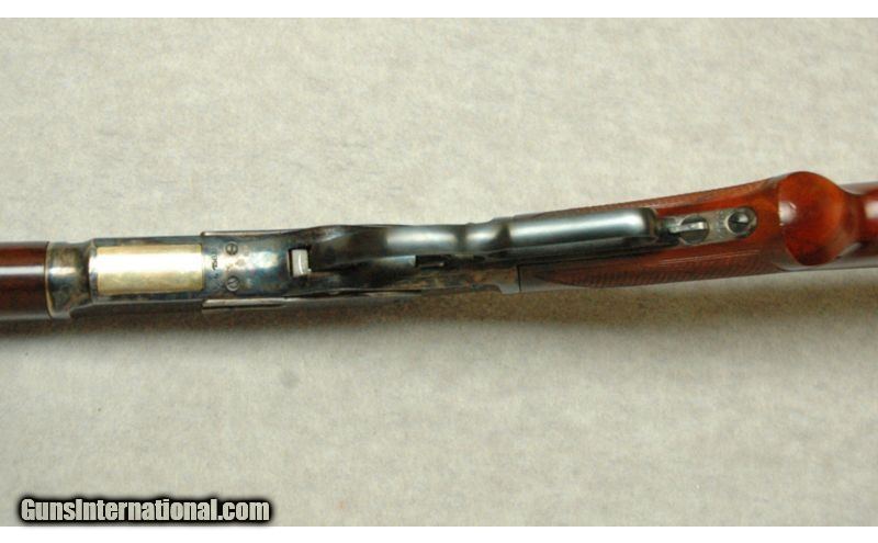 Description: Uberti Model 1873 Sporter Rifle .44-40 WCF. Excellent condition, adjustable tang sight, heavy ocatgon barrel and bright case colors on receiver. SOLD Caliber Info: .44-40 WCF Chambers: Lever action. Metal Condition: Excellent, light wear and handling marks. Wood Condition: Stock is in excellent condition. Bore Condition: Bright. Barrels: 24" Octagon barrel, case colored receiver. Triggers: Factory trigger. Stock: Gloss finish. Stock Dimensions: 13" LOP. Fore End: Checkered. Butt Pad: Curved metal butt plate. Weight: 8 Lbs 4 ozs. Sights: Tang sights with inserts. Item Location: La Vista, NE |