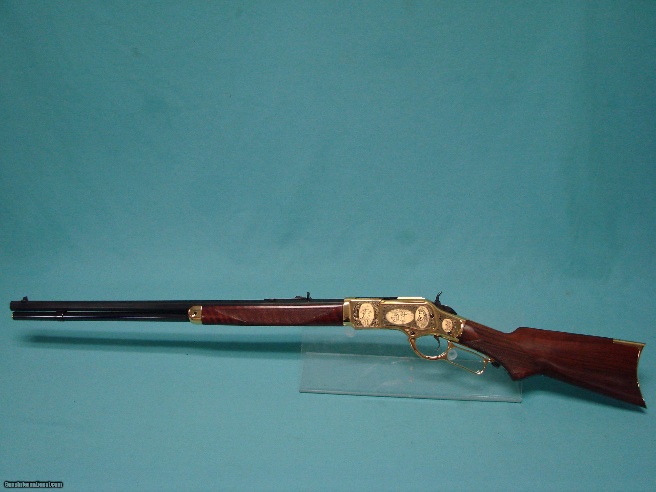 Description: Uberti 1873 America Remembers Wild West Shooters in 44-40, 24" Octagon barrel. Pistol grip,checkered stocks,engraved receiver. Complete with case and sleeve. Gun is unfired in excellent condition. *#35 Shipping Fee *Legendary Guns in Phoenix AZ 602-242-1195 Hours of operation M-F 10-6 Sat 10-5 Closed Sundays. *We offer a 3 day inspection period with a full refund if item was misrepresented. We accept returns for any reason within the 3 day inspection period with no refund for shipping coming or going and a 15% restocking fee. *We do not charge extra for using credit cards. *Please call the shop for any questions before . We are happy to answer all questions. *Your State Laws are your Responsibility to know. SOLD Manufacturer: Uberti Model: 1873 Caliber Info: 44-40 Condition: Never Fired |