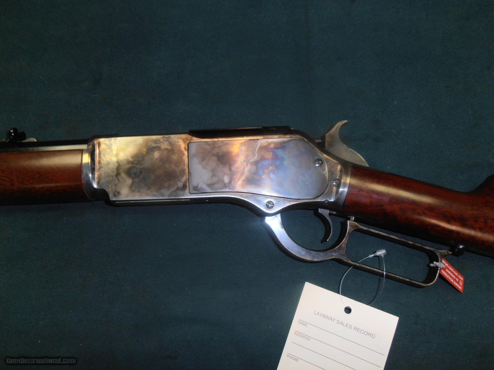 Description: Uberti copy of Winchester 1876, 50/95, 28" barrel, new in the factory box. Part number is 342503, Serial number is W725xx. New in box. Email me if you would like these pics sent to you, they will come through bigger and better than on the listing page here. Email me with any questions. I am a store front dealer, and I will close s if the gun sells locally. Once ahas reached my reserve, I will pull it from my shelves. Please check your local laws to confirm it is legal to own in your state! Buyer pays $25 shipping and insurance to your FFL, in the lower 48. AK, HI or PR is extra. I will ship to California, NO PROBLEM! All my guns come with a non firing, 3 day unconditional return privilege, from the day UPS delivers to your dealer. Buyer pays shipping both ways if the gun comes back. I can add a new hard case by PLANO for secure shipping for $25 if the buyer wishes (highly recommended, cheap insurance, really helps keep the UPS monster from eating my guns!). No sales tax on guns ship out of Kansas, guns sold in Kansas are subject to Kansas sales tax. I am a licensed FFL, and will include a copy of my FFL with the gun for your dealers records. I will ship to a C&R if the gun is eligible (you look it up!). I will ship to California, but you need to confirm the gun is legal where you are, California or other. I am always looking for good clean, old original Winchesters to buy, consign, or trade, especially pre '64's model 70's and model 54's. WE ALSO TRADE FOR CLASSIC CARS AND TRUCKS! I will leave feedback as soon as the buyer leaves feedback on me. Email me with any questions, and good luck! SOLD |