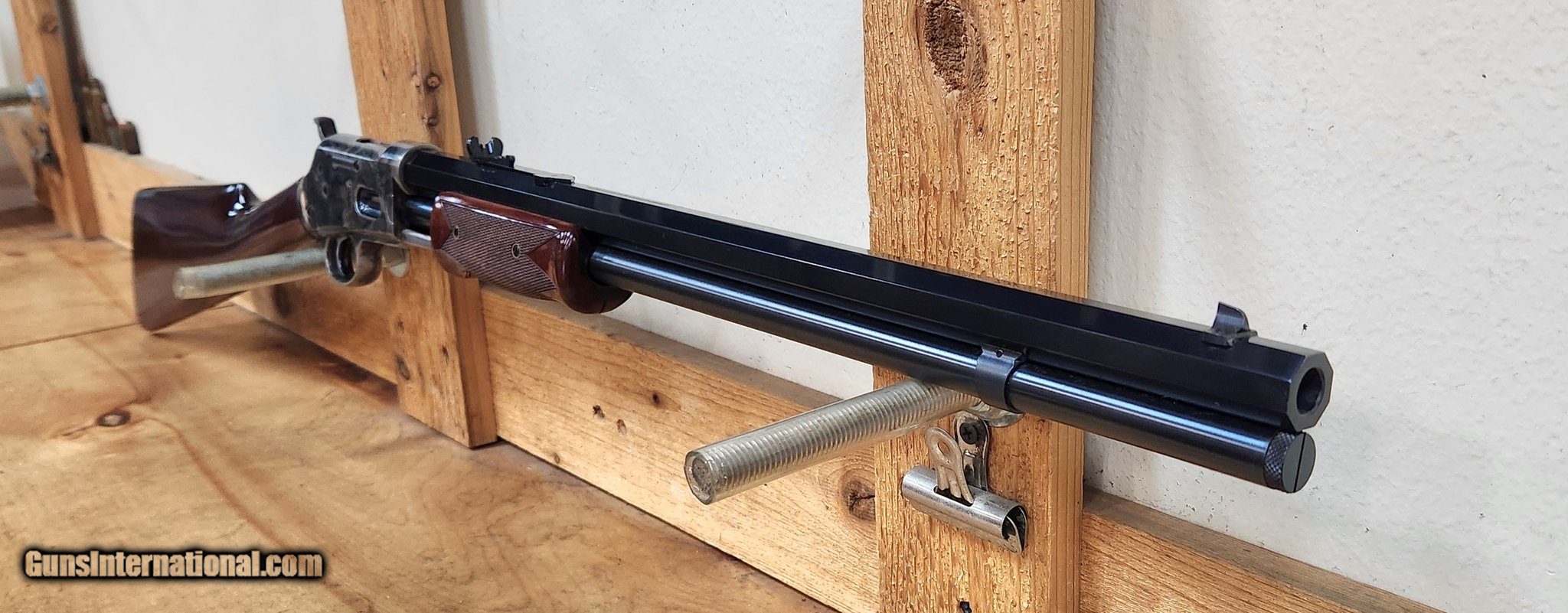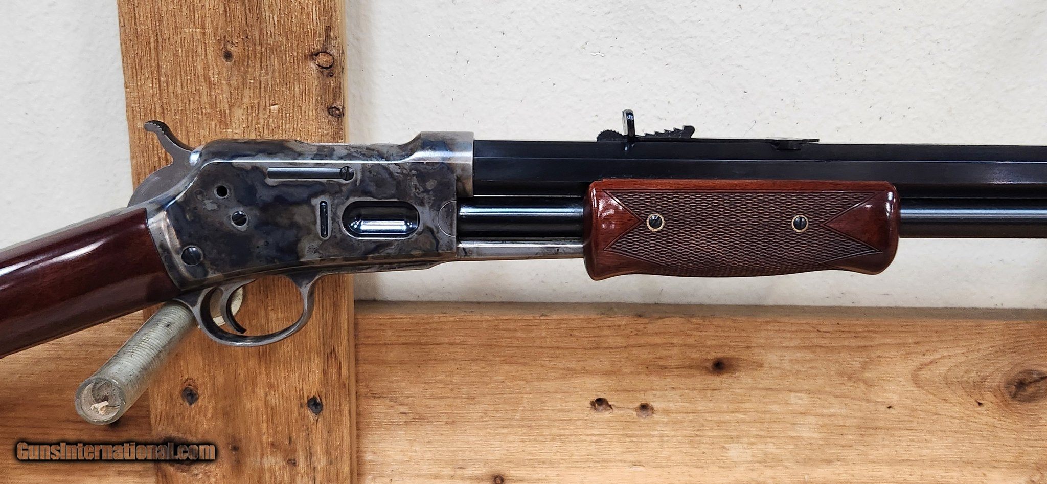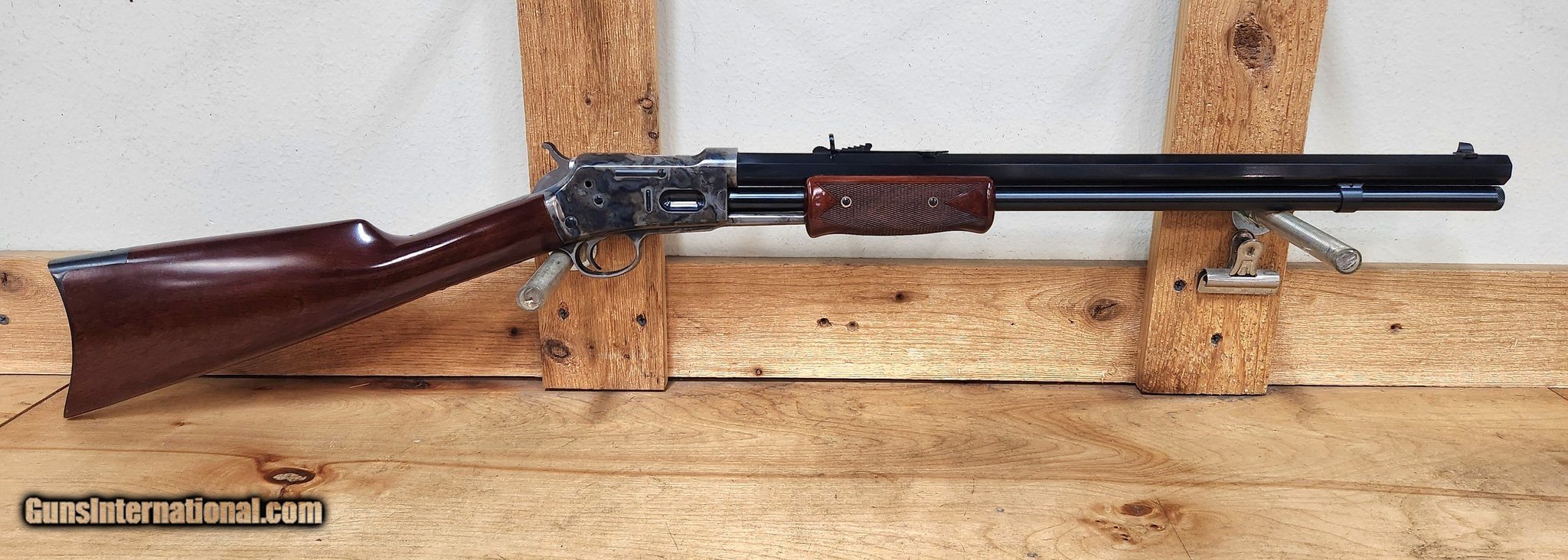 Description: Guns Listing ID: 1366030 From Uberti: The first Colt Lightning rifle hit the market in 1884 and was chambered in .44/40, the most popular pistol round offered for Colt’s 1873 single action revolvers. Other models soon followed in three different frame sizes to accommodate a wide range of cartridges from .22 caliber, clear up to .50/95 Express. Colt manufactured over 185,000 Lightning Rifles, but there hasn’t been a new one made since 1904 – that is until now. The Lightning Rifle by Uberti is a replica of the original Lightning, but by using modern steel the Uberti Lightning will safely stand up to modern ammunition. The Lightning Rifle is available in .45 Colt or .357 Magnum, all with luster finished walnut stocks and a choice of blued or color case-hardened receivers. When it comes to speed it can still beat a Winchester – or as Colt used to put it “nothing is faster than Lightning.” This rifle is in great condition. It features the color case hardened receiver with brilliant colors. The 20\" octagonal barrel features semi-buckhorn adjustable sights and a full length magazine tube. There are some minor handling marks on the wood and metal finish but you have to look close to see them. This rifle will make a nice addition to anyone‚‚s collection. No factory box SOLD Manufacturer: UBERTI Model: 1884 Lightning Carbine Caliber Info: .45 COLT Condition: Used - Non-Certified Barrels: 20 BARREL Finish: BLACK /W WOOD STOCK |