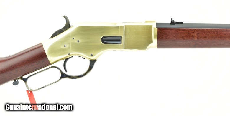 Description: Uberti 66 Carbine .45 LC caliber carbine. 19” Round barrel, brass receiver, walnut wood, case colored and lever. New.