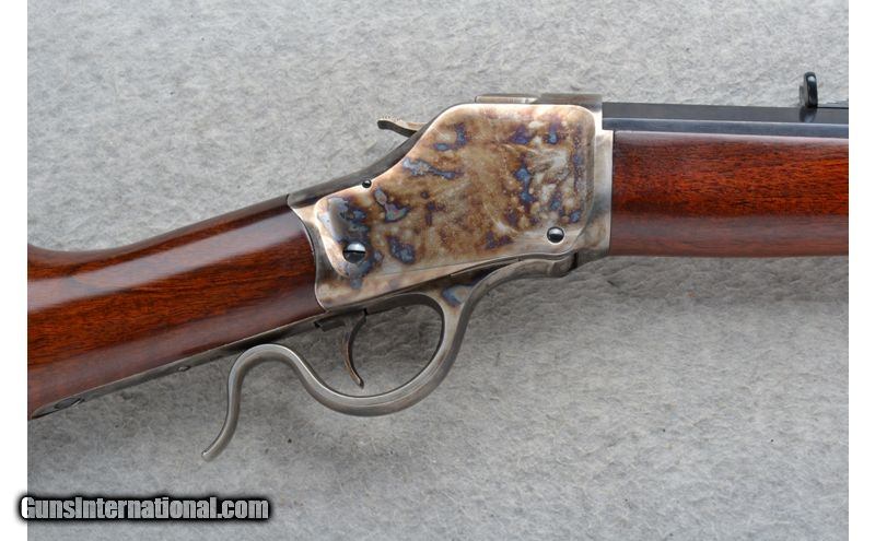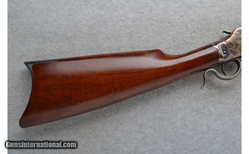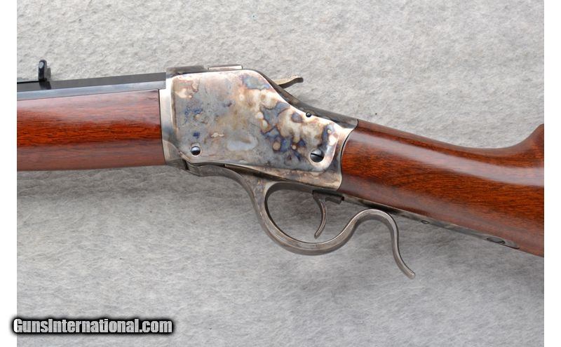 Description: This A. Uberti Model Falling Block is a single shot .44 W.C.F. that has been rechambered to a .444 Marlin Cal. It has 30" octagon barrel and smooth grip walnut stock. A case colored receiver. In overall excellent condition it comes as is. No box. .444 Marlin Rechambered SOLD Chambers: Single shot. Metal Condition: Excellent. Wood Condition: Excellent. Barrels: 30" octagon. Stock Dimensions: LOP 14 Fore End: Smooth grip walnut. Butt Pad: Smooth steel crescent with sliding door compartment that has a cleaning rod. Sights: Blade front. Adjustable notch middle. Item Location: Mitchell, SD |